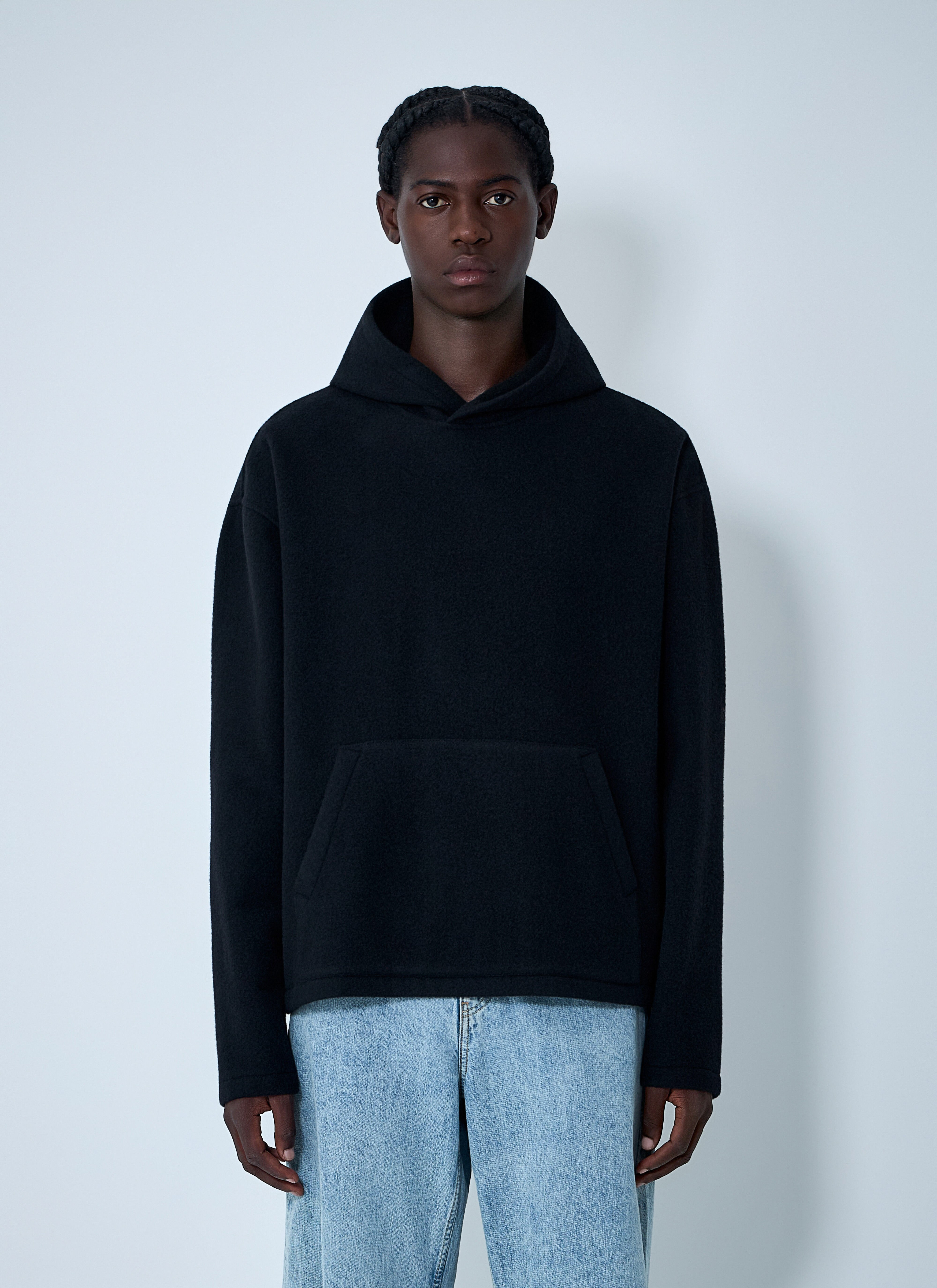 Wool hooded sweatshirt. - Hood - Long sleeves - Straight hem - 100% Wool. Hand wash - Color: Black - Code: NFL9 X02 - NATURAL FLEECE BLACK FLEECE
