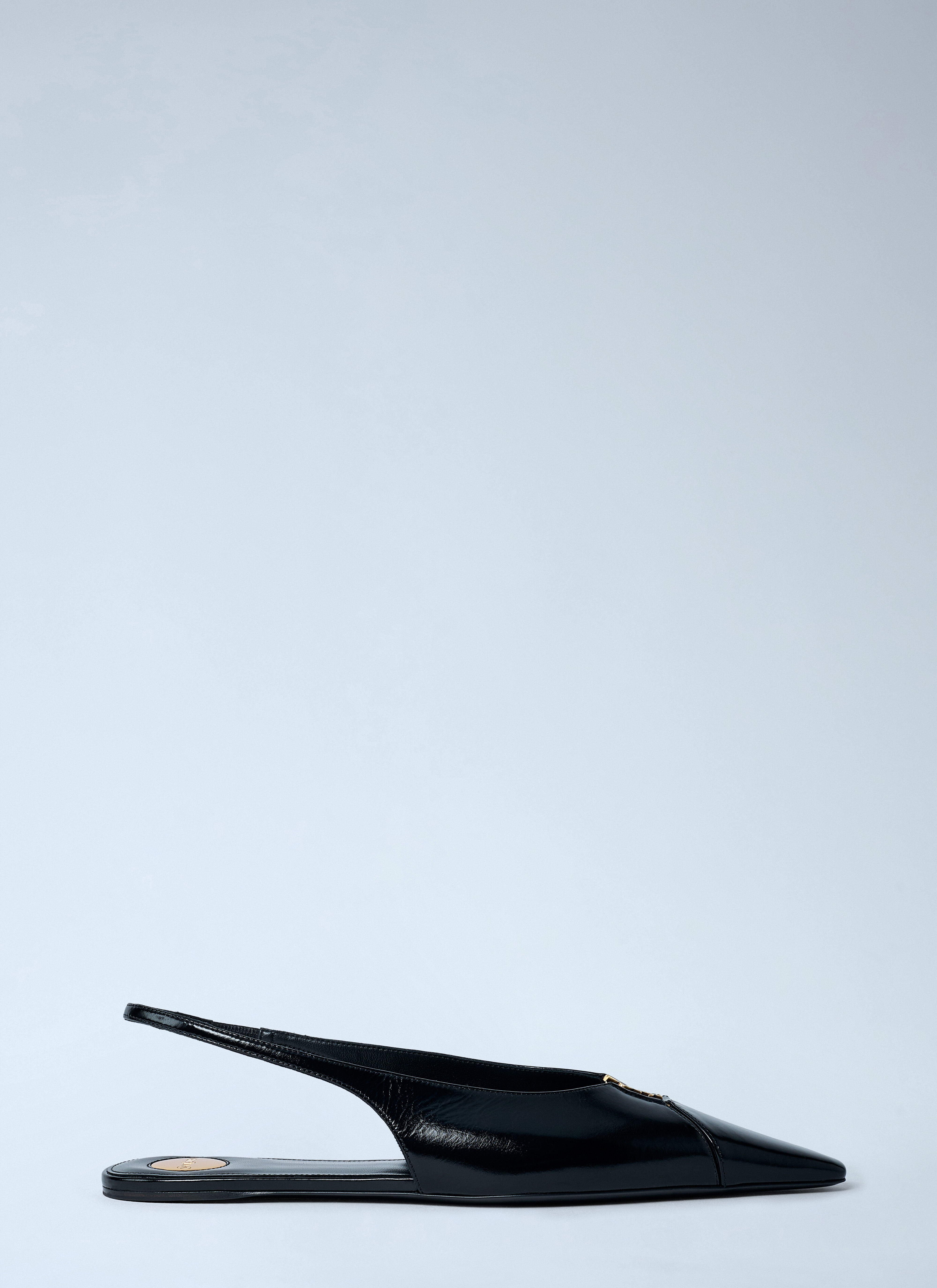 Leather slingback ballerina flats with front logo hardware. - Pointed toe - Slingback construction with elasticated finish - Front logo hardware - Flat sole - 100% Leather - Color: Black - Code: 800240 AAEHI 1000