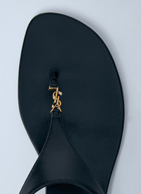 Leather in smooth-grain finish with signature logo plaque. - Toe post - Elasticated strap at rear - Front logo plaque - 100% Leather - Color: Black - Code: 818293 AADF0 1000