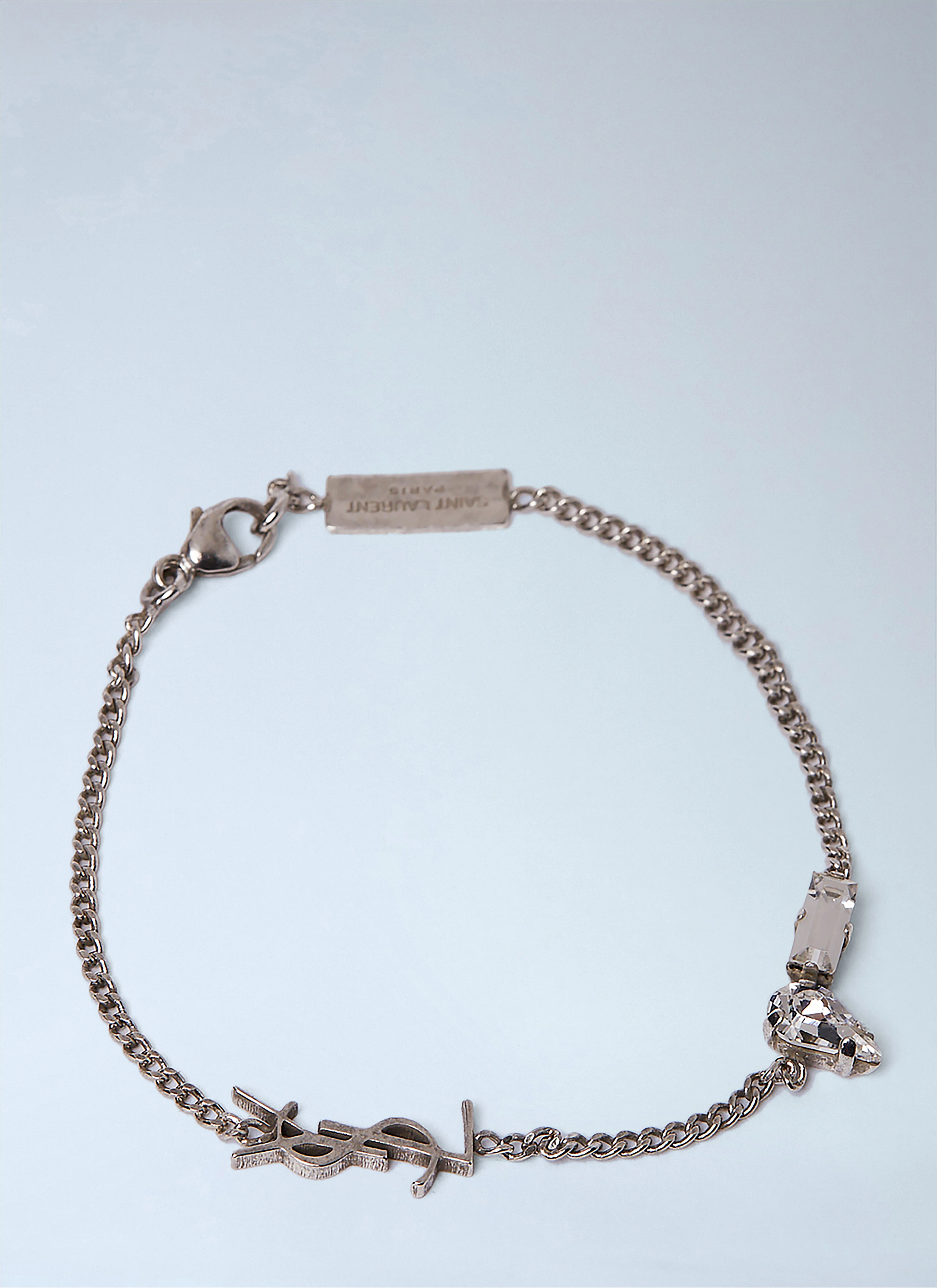 Chain bracelet with logo pendant and crystal embellishments. - Lobster clasp fastening - Logo pendant - Crystal embellishments - 100% Brass - Color: Silver - Code: 692489 Y1526 8368