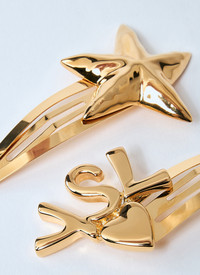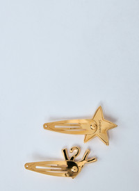 Set of two hair clips with logo motif. - Hinge fastening - Logo plaque - Made in Italy - 100% Brass - Color: Gold - Code: 823457 Y1500 8030