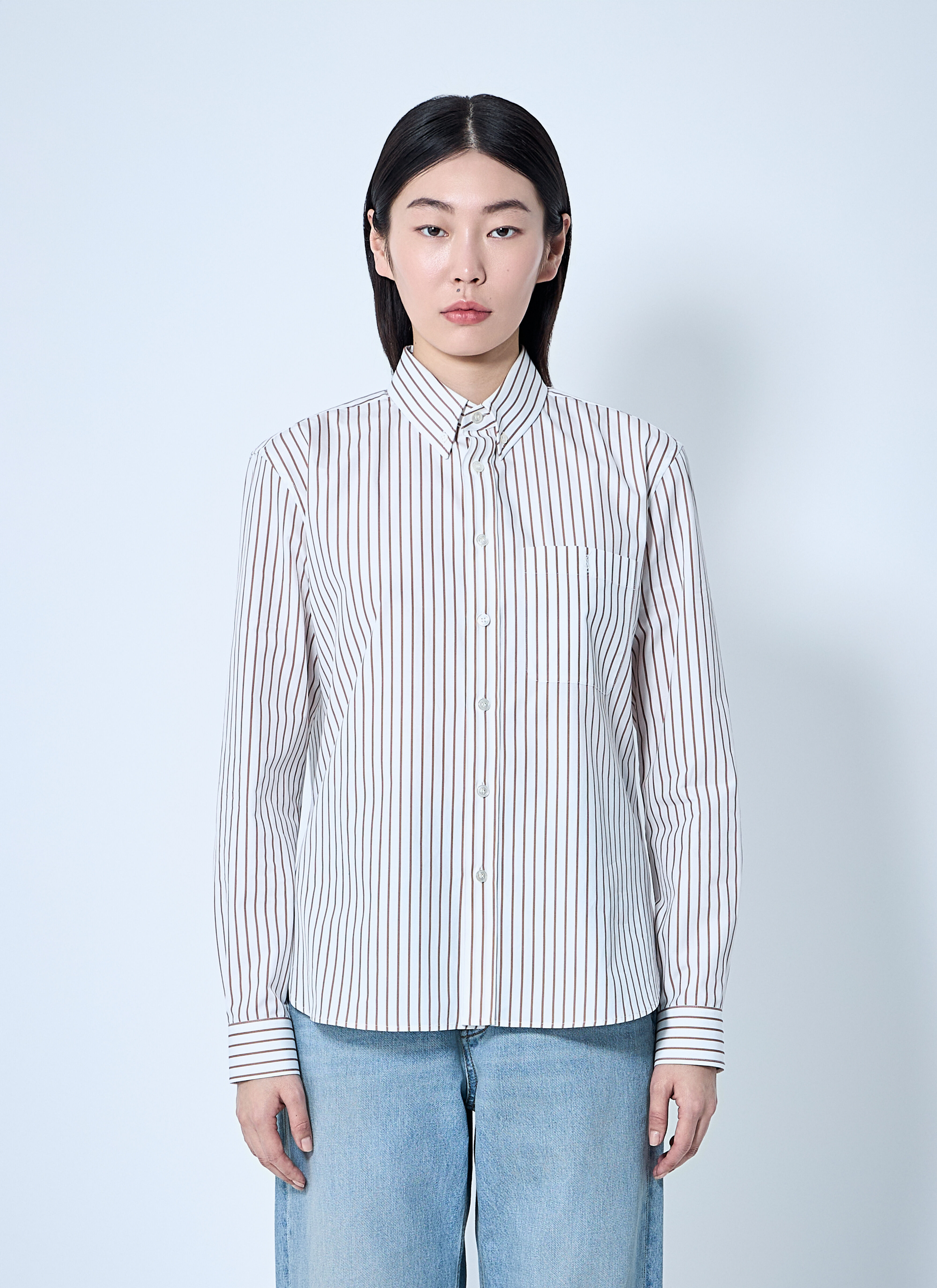 Button-down shirt in cotton striped poplin. - Classic collar - Front button fastening - Long sleeves - Chest patch pocket with logo emebroidery - Button-fastening cuffs - 100% Cotton. Dry clean - Color: Beige - Code: 823671 Y6E77 9260