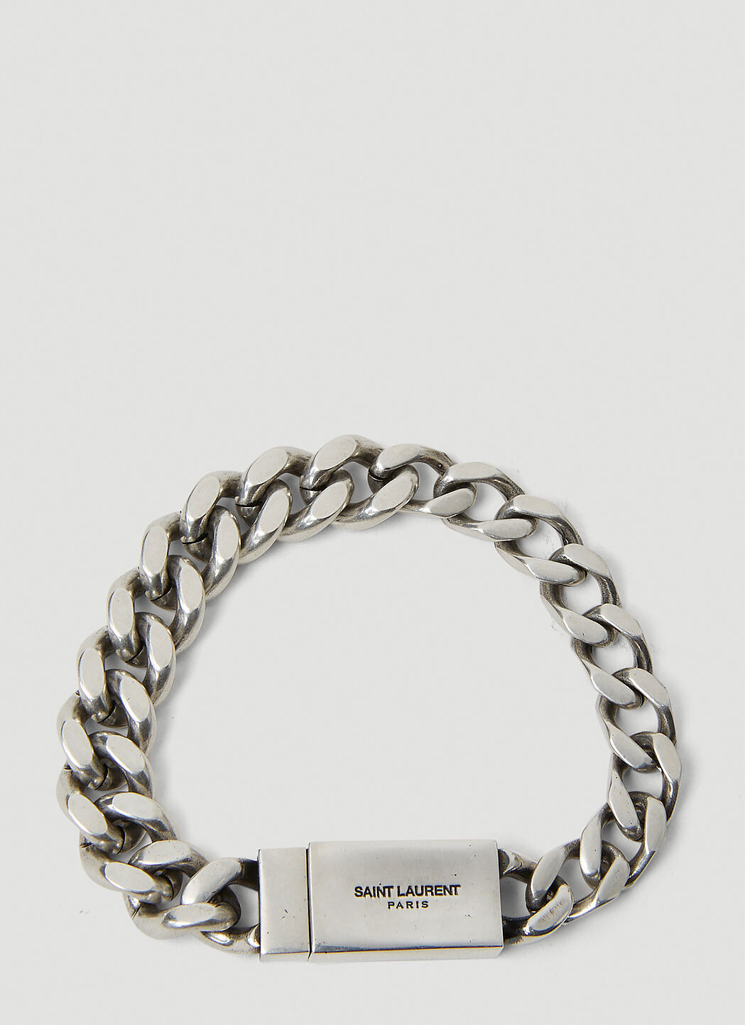 Curb chain bracelet with engraved logo plaque - Push-clasp fastening - Logo engraving at fastening - Made in Italy - 100% Brass - Color: Silver - Code: 731208 Y1500 8142