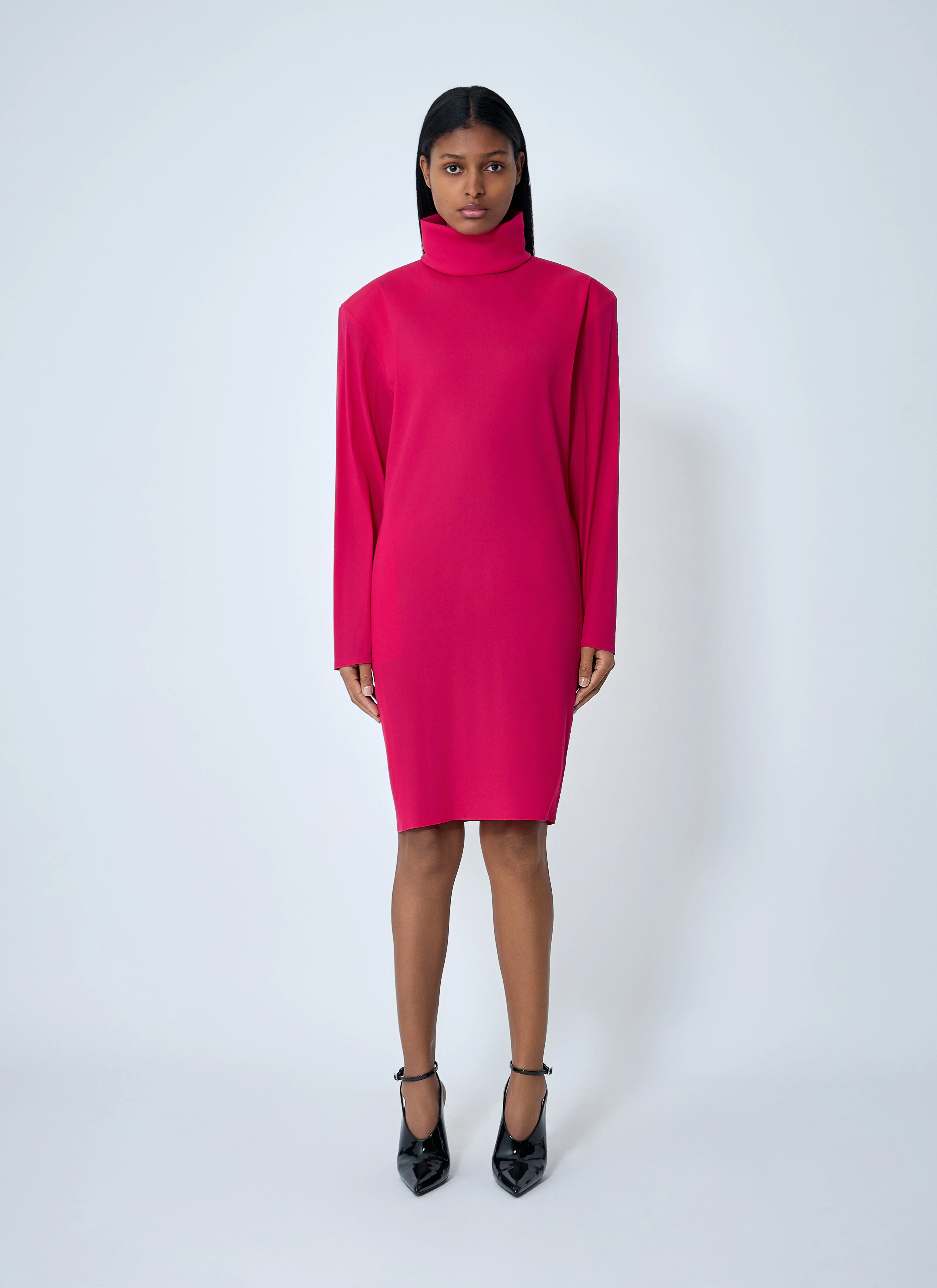 high-neck midi dress