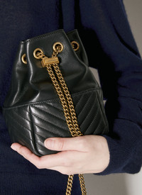 Joe mini bucket bag in leather with front flap pocket and logo plaque. - Drawstring chain strap - Open top - Front flap pocket - Front logo plaque - Quilted panel - One main compartment - Fully lined - Made in Italy - 100% Leather - Color: Black - Code: 760745 1EL07 1000