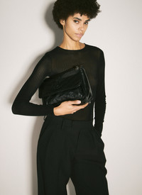 Medium Niki shoulder bag in shiny, grained leather with front logo plaque. - Sliding chain shoulder strap - Press-stud fastening front-flap closure - Front logo plaque - Rear slip pocket - Front slip pocket - One main compartment - Interior slip pocket - Interior zip pocket - Made in Italy - 100% Leather. - Color: Black - Code: 633158 0EN04 1000