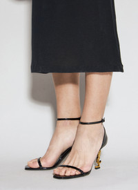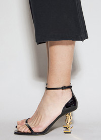 Opyum heeled sandals in leather with gold-tone Cassandre heel. - Open toe - Buckle-fastening ankle strap - Logo print at footbed - Logo-silhouette heel - Made in Italy - 100% Leather - Color: Black - Code: 557679 1TV1A 1000