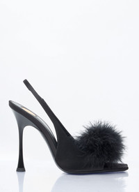 Harlow sandals in satin crepe with feather embellishment. - Open toe - Elasticated slingback strap - Sculpted heel - Made in Italy - 72% Viscose, 28% Silk - Color: Black - Code: 805757 9QNBI 1000