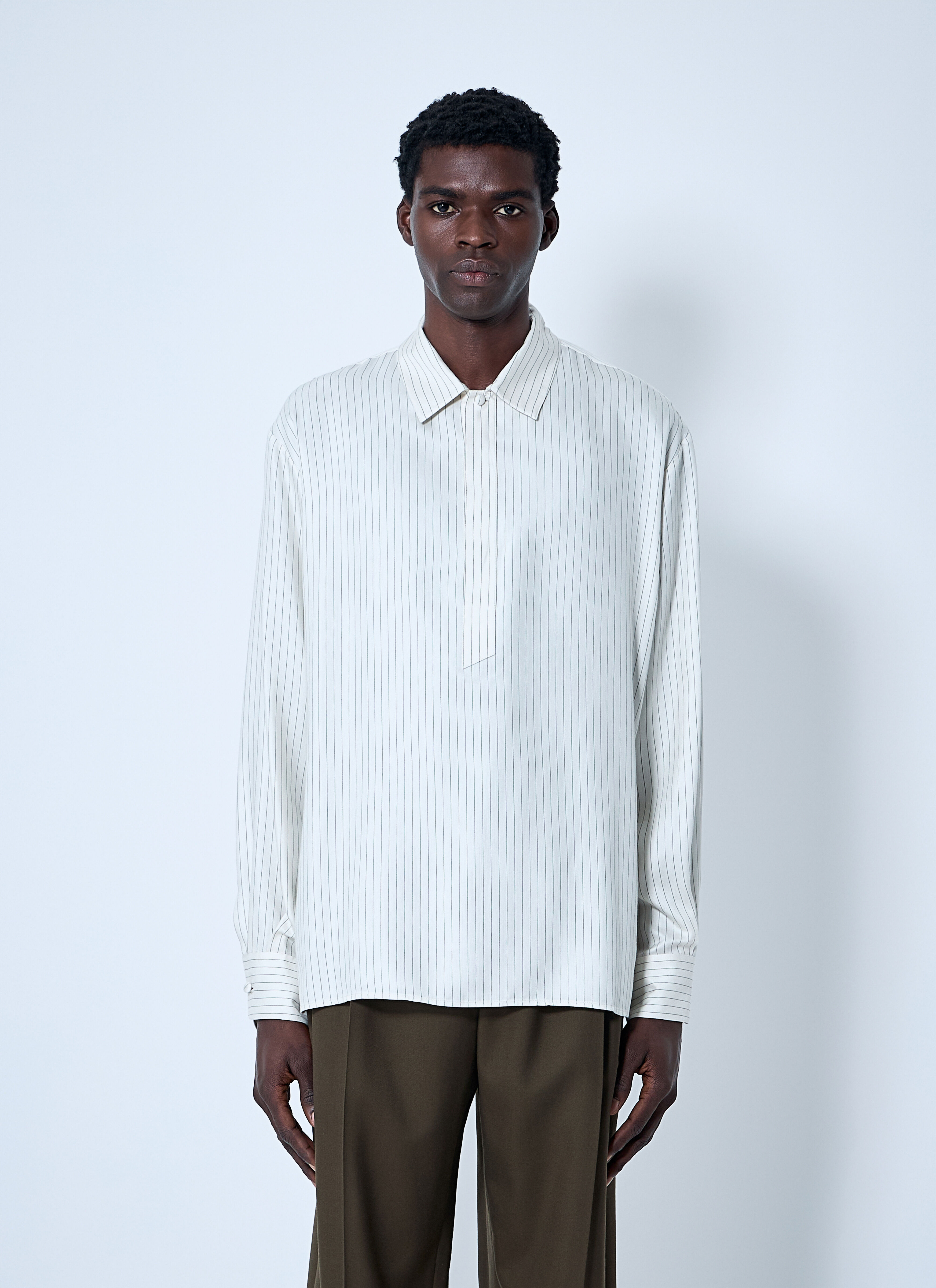 Pointed collar shirt in stripe weave. - Classic collar - Front button fastening - Long sleeves - Button fastening cuffs - 69% Viscose, 29% Silk, 2% Polyester. Dry clean - Color: Black - Code: 813934 Y2L93 9787