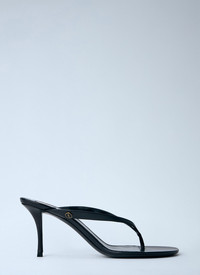 High heel sandals in leather with thong straps. - Open toe - Slip-on style - Stiletto heel - 100% Leather - Color: Black - Code: 860795 AAF2R 1000