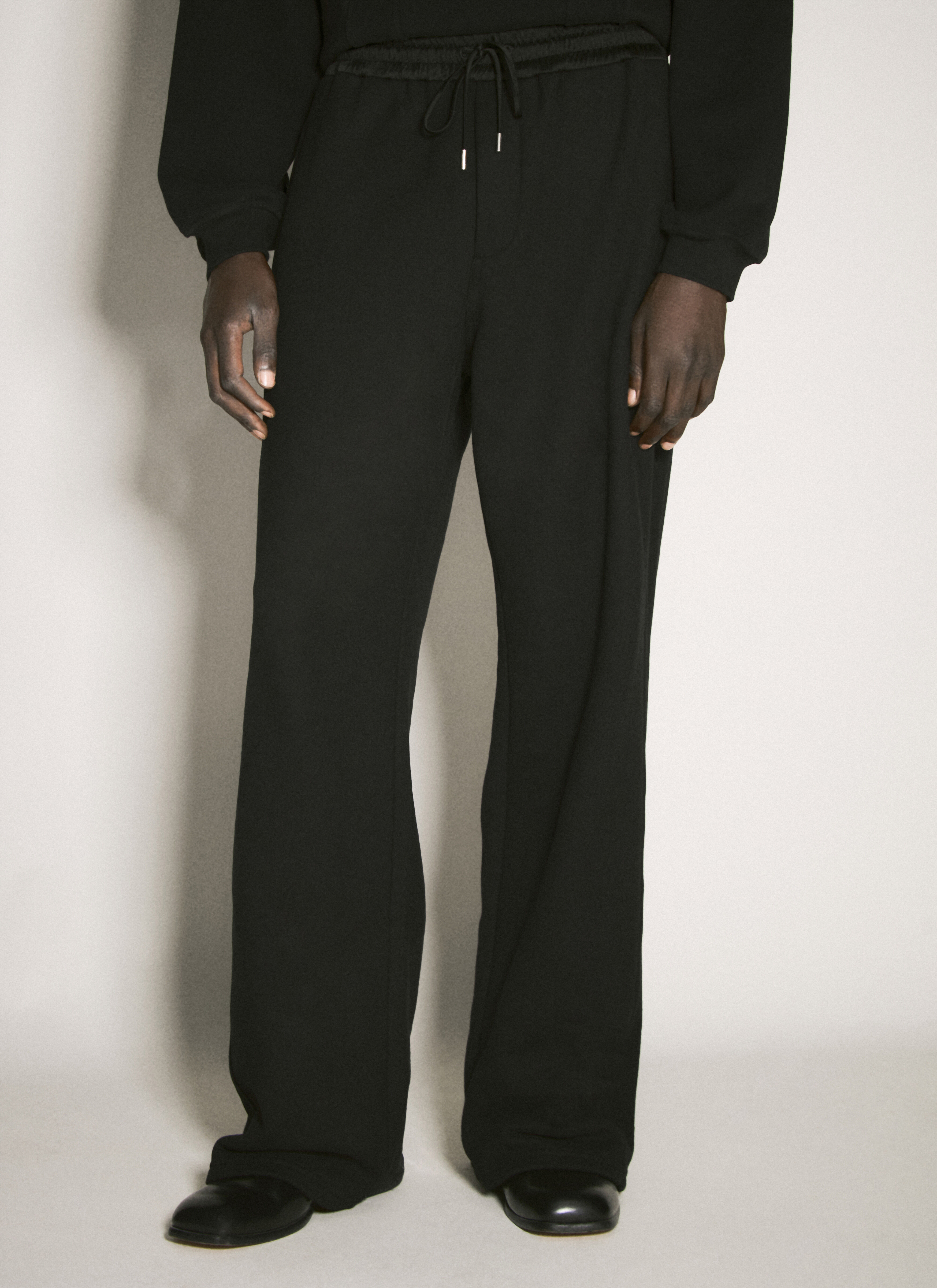 Wide-leg track pants in cotton fleece with satin waistband. - Mid rise - Adjustable drawstring waistband - Side slip pockets - Faux jet pockets at rear - Made in Italy - 100% Cotton. Hand wash - Color: Black - Code: 778060 Y36SW 1000