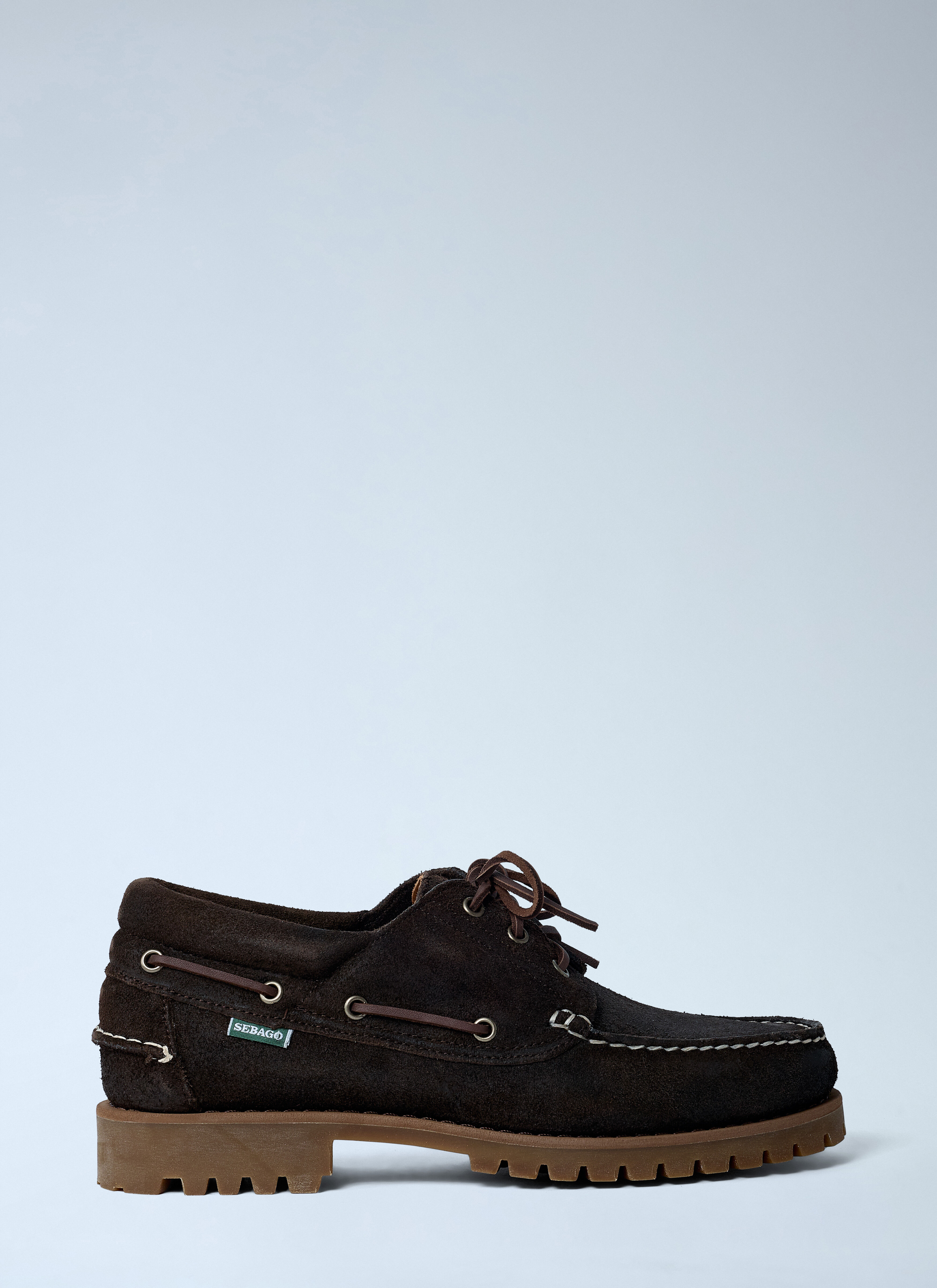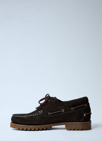 Leather boat shoes in suede finish. - Round toe - Front lace-up fastenings - Logo patch at side - Lace detail at side - 100% Leather - Color: Brown - Code: 74114CW 901