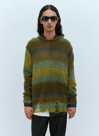 Oversized knit mohair sweater with distressed hem. - Crewneck - Long sleeves - Distressed hem - Stripe motif - 64% Mohair, 36% Nylon. Professional dry clean - Color: Green - Code: 232_UKT009_STPDGRN