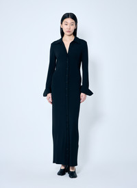Shirt maxi dress in crepe jersey. - Classic collar - Front button fastening - Long sleeves - Button-fastening cuffs - Open rear - 95% Viscose, 5% Elastane. Hand wash - Color: Black - Code: 2512621041670 003