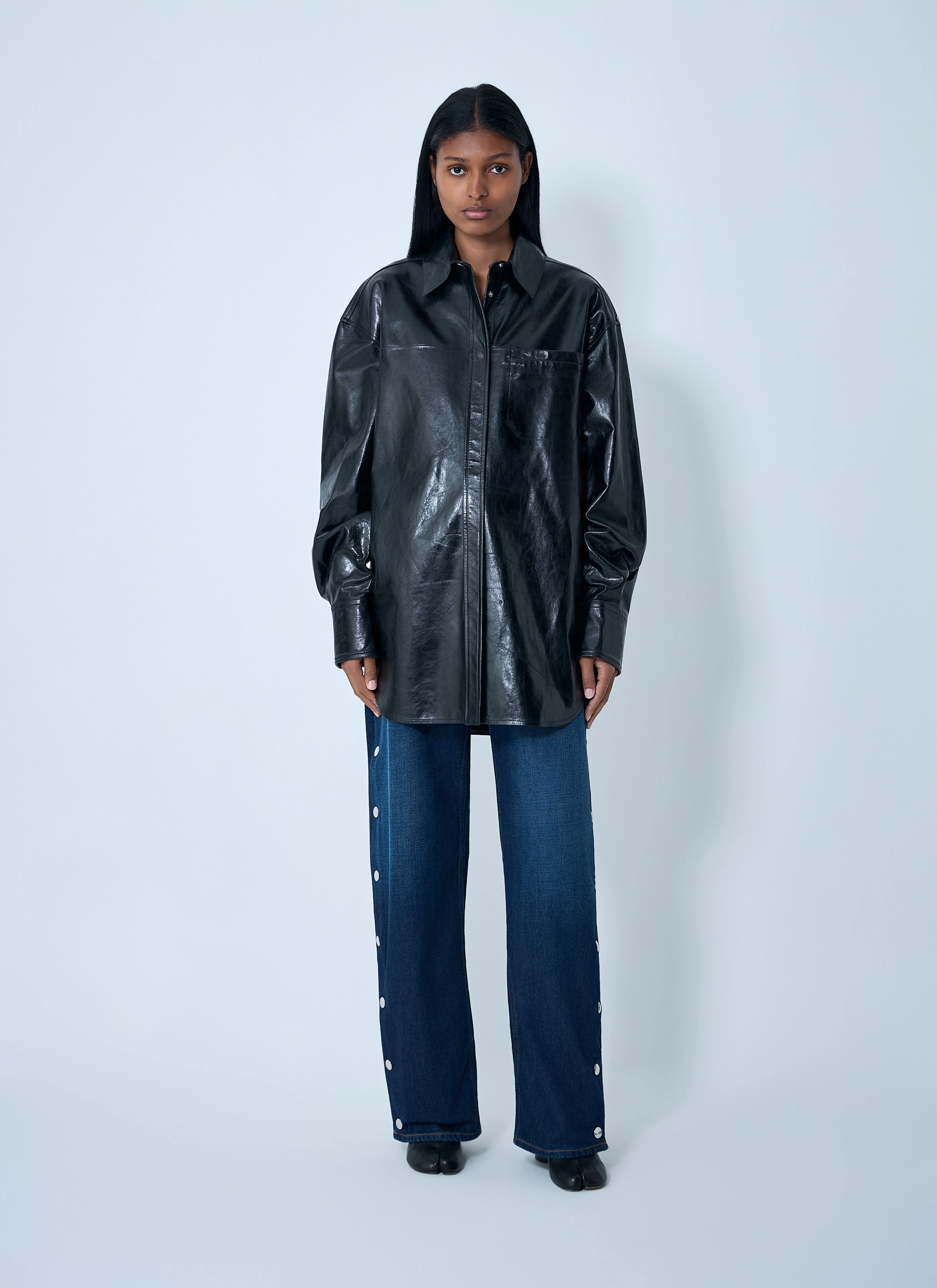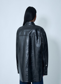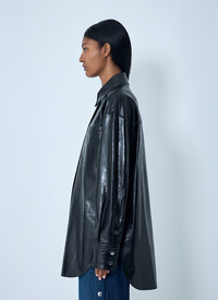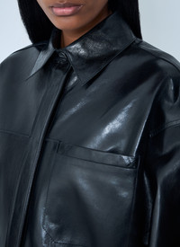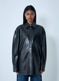 Button-down overshirt in smooth-grain leather. - Classic collar - Front button fastening - Long sleeves - Chest patch pocket - Button-fastening cuffs - 100% Leather. Specialist dry clean - Color: Black - Code: 2522446022600 002