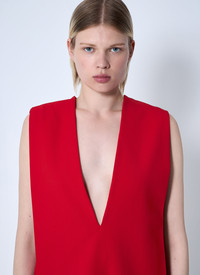 Mini dress with plunge neckline and side splits. - Deep V neck - Side zip fastening - 97% Viscose, 3% Elastane. Dry clean - Color: Red - Code: 2512221143670 002