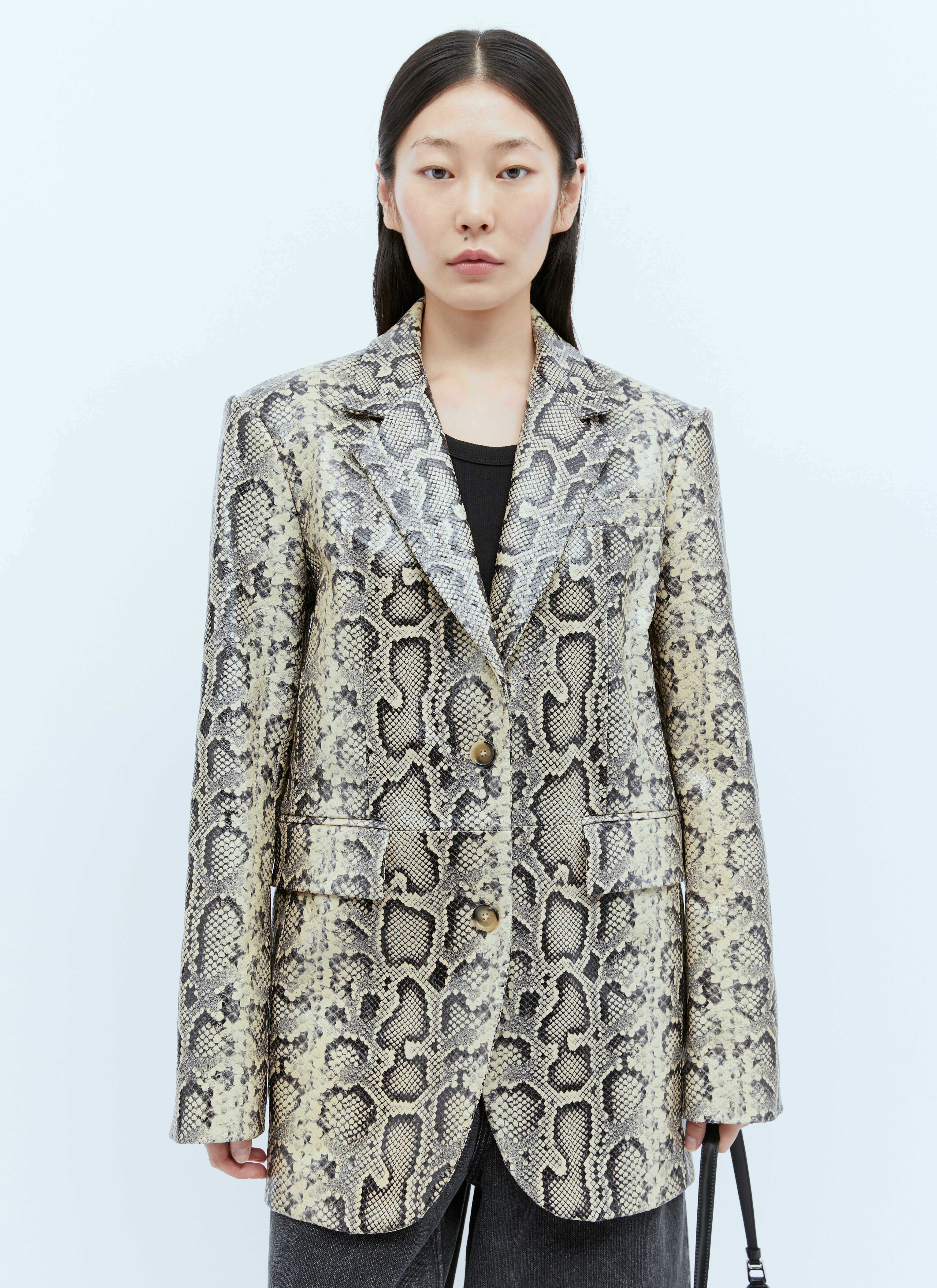 Python-Print Oversized Leather Blazer