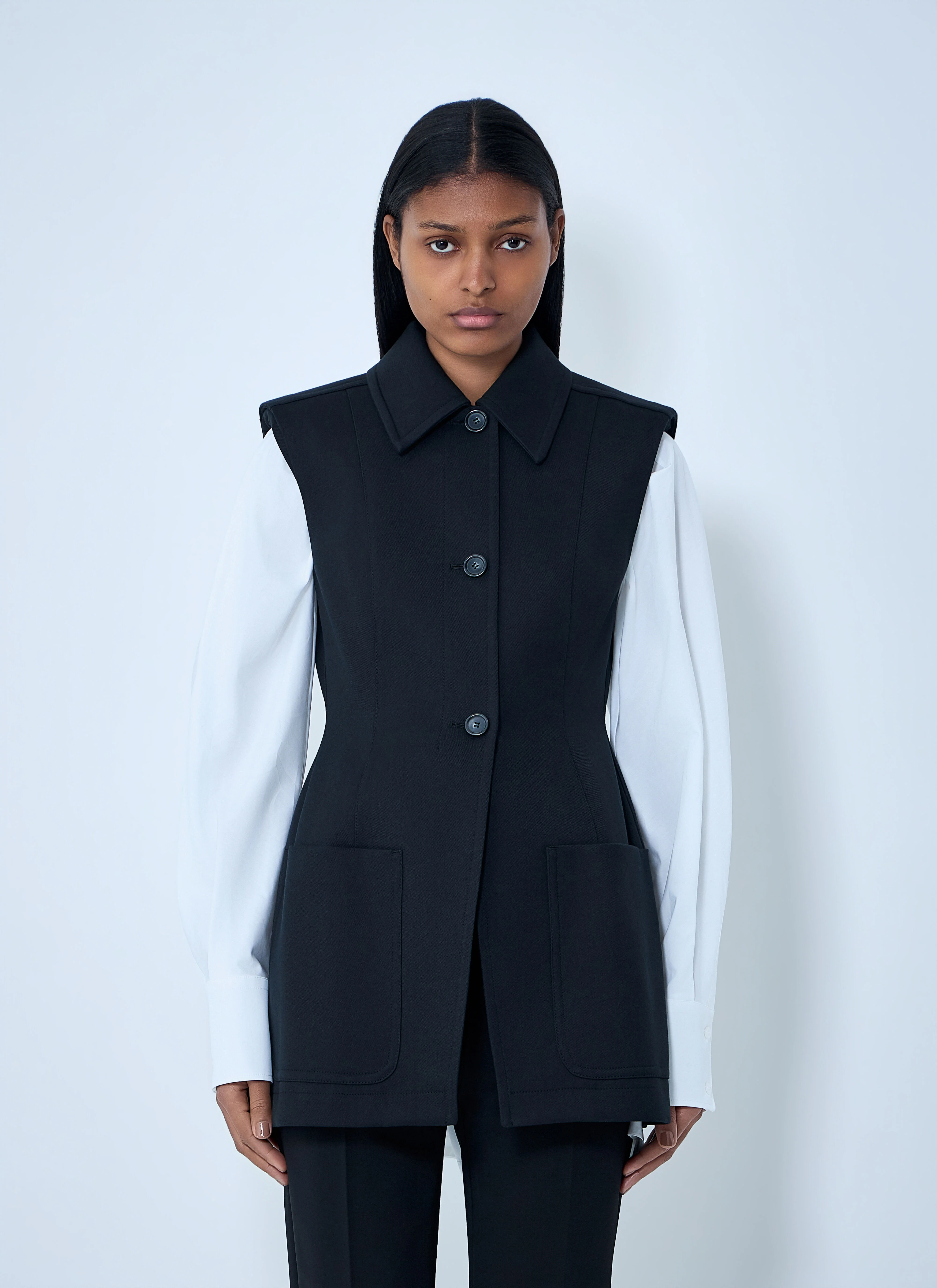 Sleeveless tailored vest in structured weave. - Pointed collar - Front button fastening - Front patch pockets - 53% Cotton, 47% Viscose. Dry clean - Color: Black - Code: 2612281021600 003