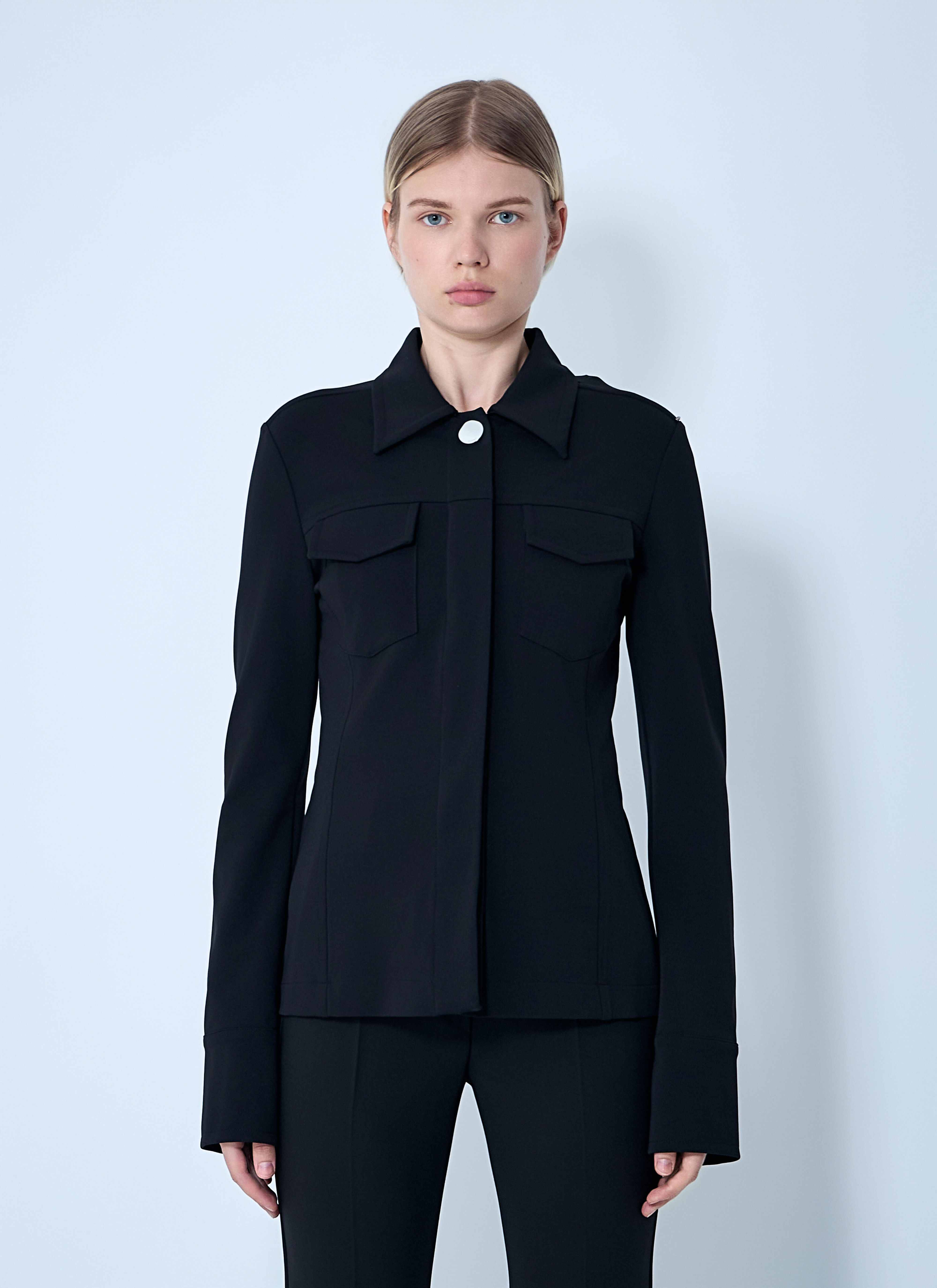 Wells jacket in jersey weave. - Classic collar - Front button fastening - Long sleeves - Straight hem - 70% Viscose, 25% Polyamide, 5% Elastane. Dry clean - Color: Black - Code: 2522916011600 001