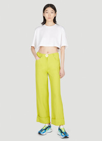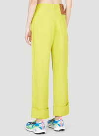 - Technical blend fabrication in a close weave - Mid-rise - Front button and zip-fly fastenings - Five pocket design - Turned up hem - Rear logo patch - 72% Viscose, Flax. Dry clean - Color: Yellow - Code: 640049STA49 8301