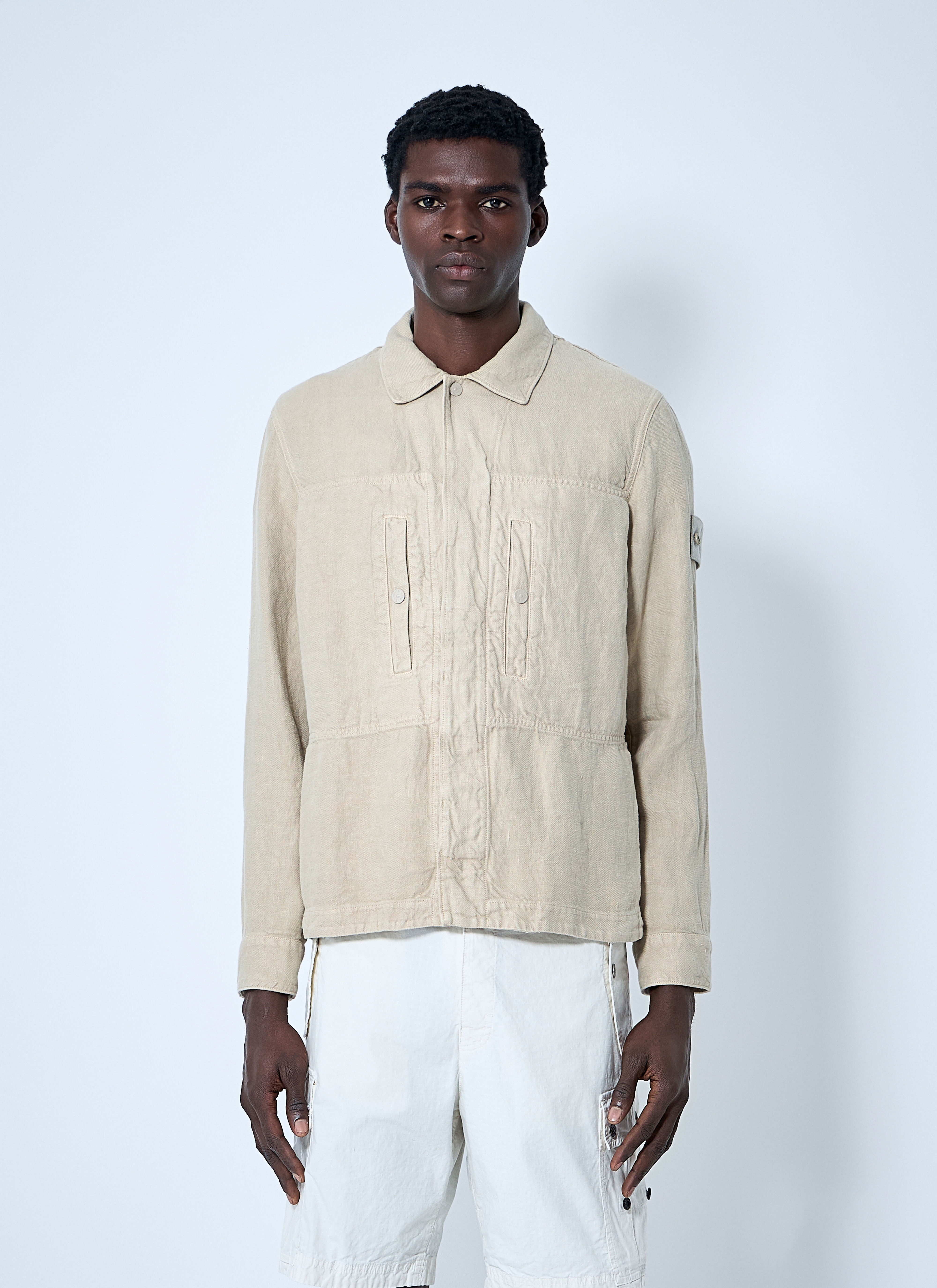 Crinkle linen weave. - Classic collar - Front button fastening - Long sleeves - Front snap-button fastening pockets - Side logo patch - 100% Linen. Hand wash - Color: Beige - Code: 1200010 S00F8 V0090