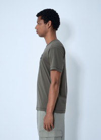 Logo motif T-shirt in cotton jersey. - Crewneck - Short sleeves - Front logo motif - 100% Cotton. Machine wash cold - Color: Khaki - Code: 2100027 S0013 V0054