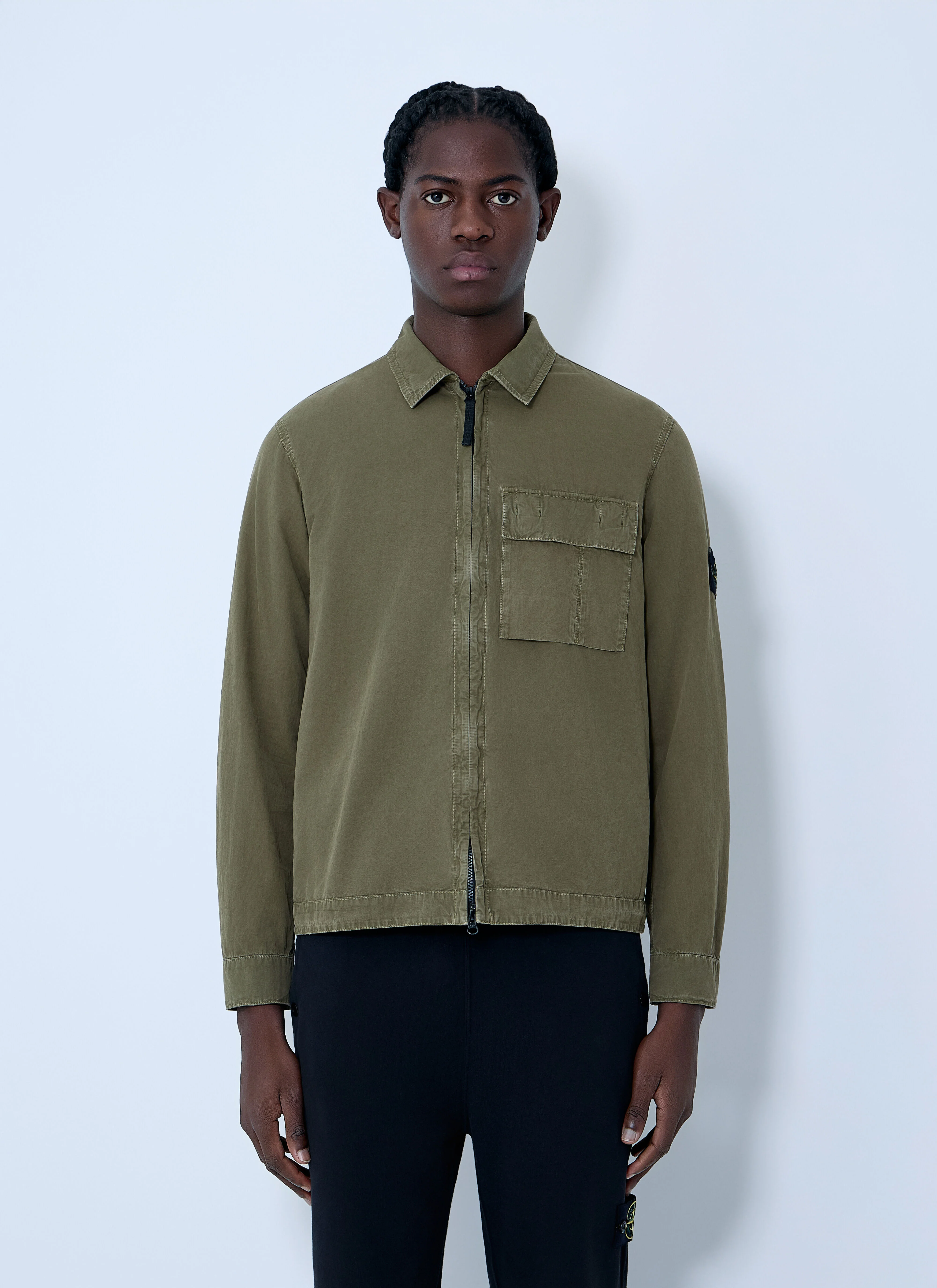 Zip-down shirt in cotton weave with side signature compass patch. - Classic collar - Front zip fastening - Long sleeves - Front flap pocket - Button-fastening cuffs - 100% Cotton. Dry clean - Color: Green - Code: L1S151200008 S00WN V015G
