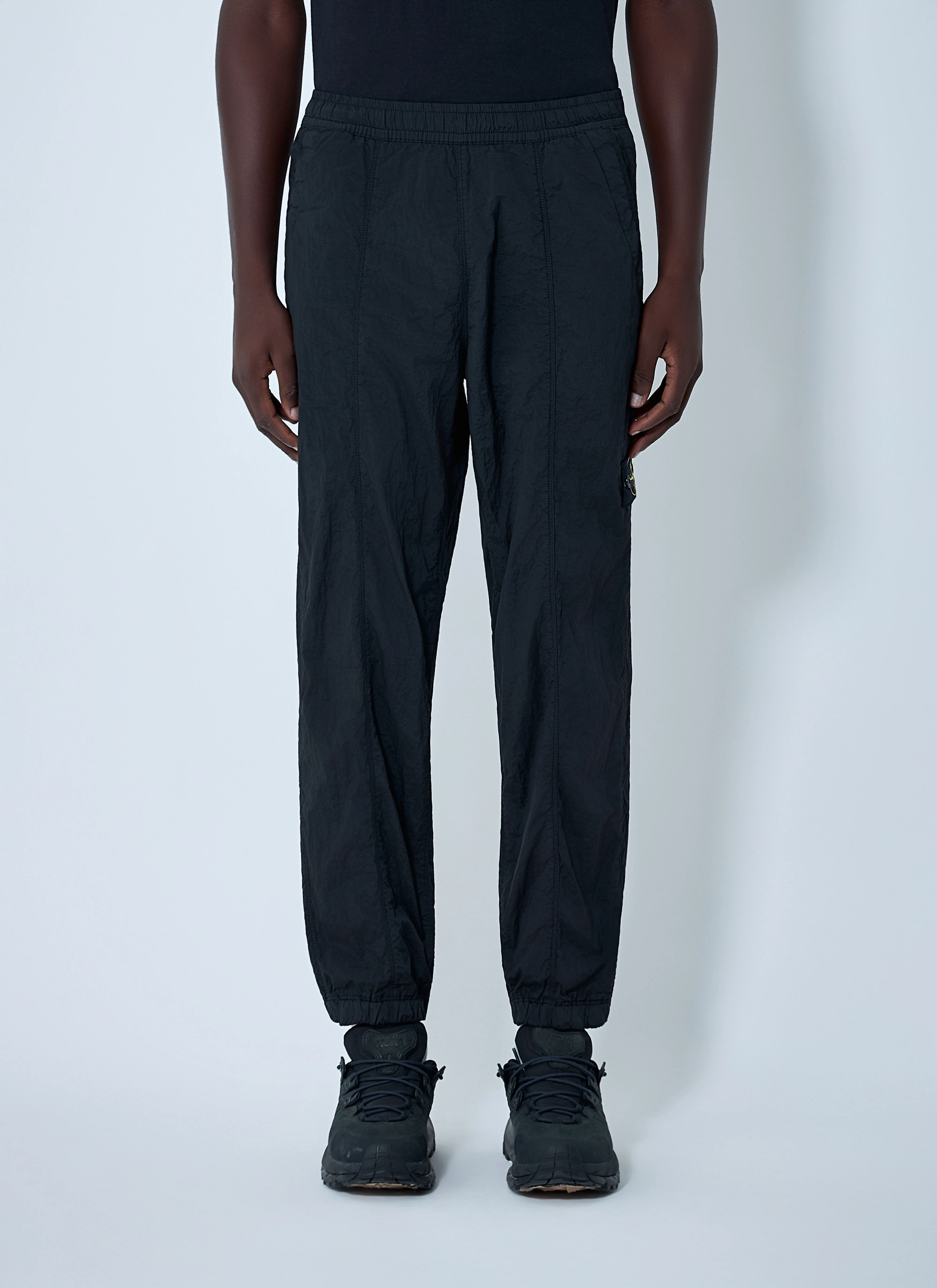 Logo patch pants in iridescent Nylon Metal made from ECONYL® regenerated yarns. - Mid rise - Elasticated waist - Side logo patch - Side slip pockets - Rear welt pocket - 100% Polyamide. Hand wash - Color: Black - Code: 3100013 S0019 V0029
