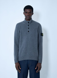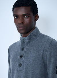 Wool-blend knit sweater with side logo patch. - Stand collar - Front button fastening - Long sleeves - Side logo patch - Rib trims - 80% Wool, 20% Polyamide. Hand wash - Color: Grey - Code: 5100040 S00A3 V0M6B