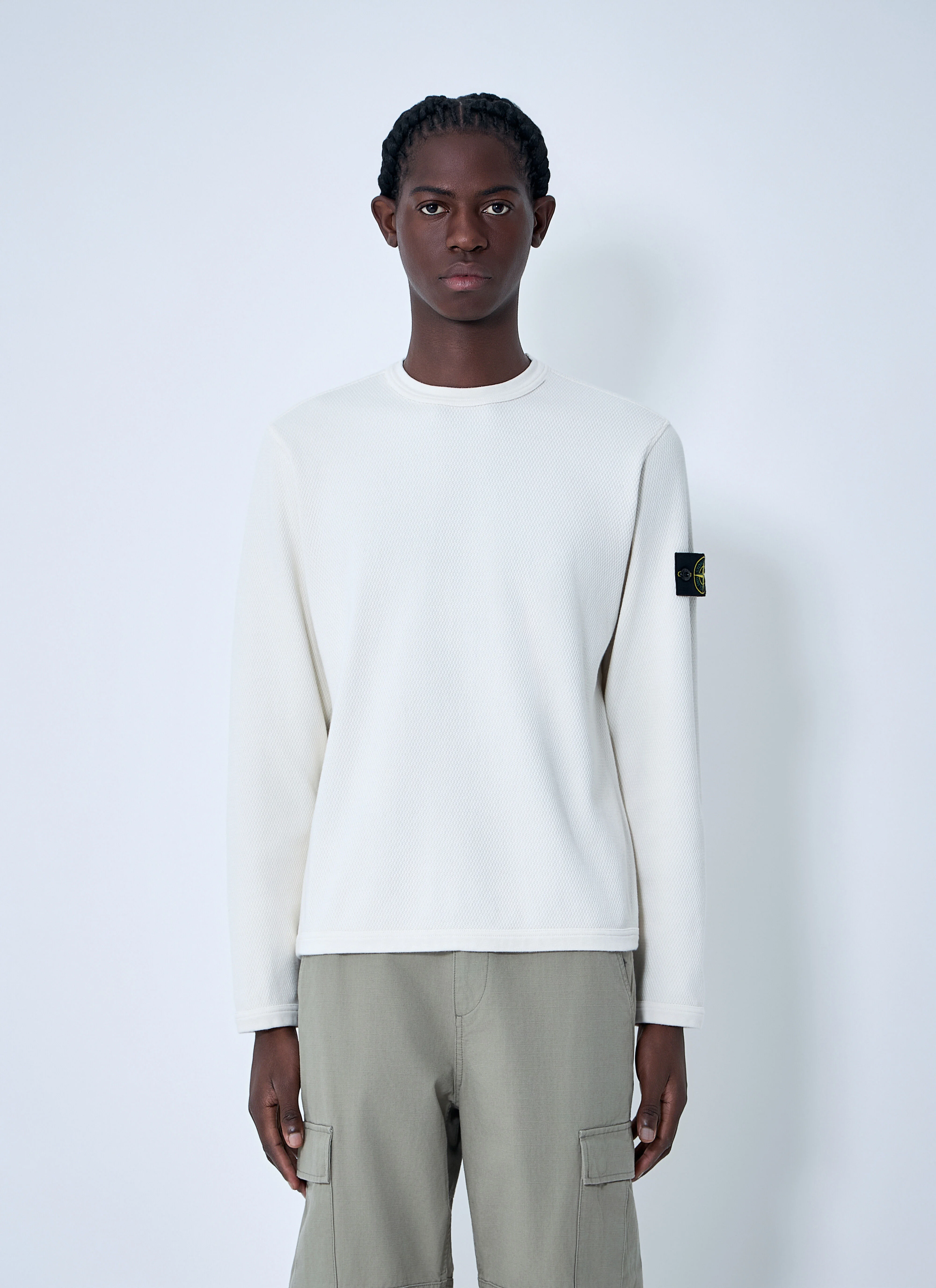Crewneck sweater with logo patch in textured knit. - Crewneck - Long sleeves - Logo patch on sleeve - 100% Cotton. Machine wash cold - Color: Ivory - Code: L1S156100011 S0297 V0093