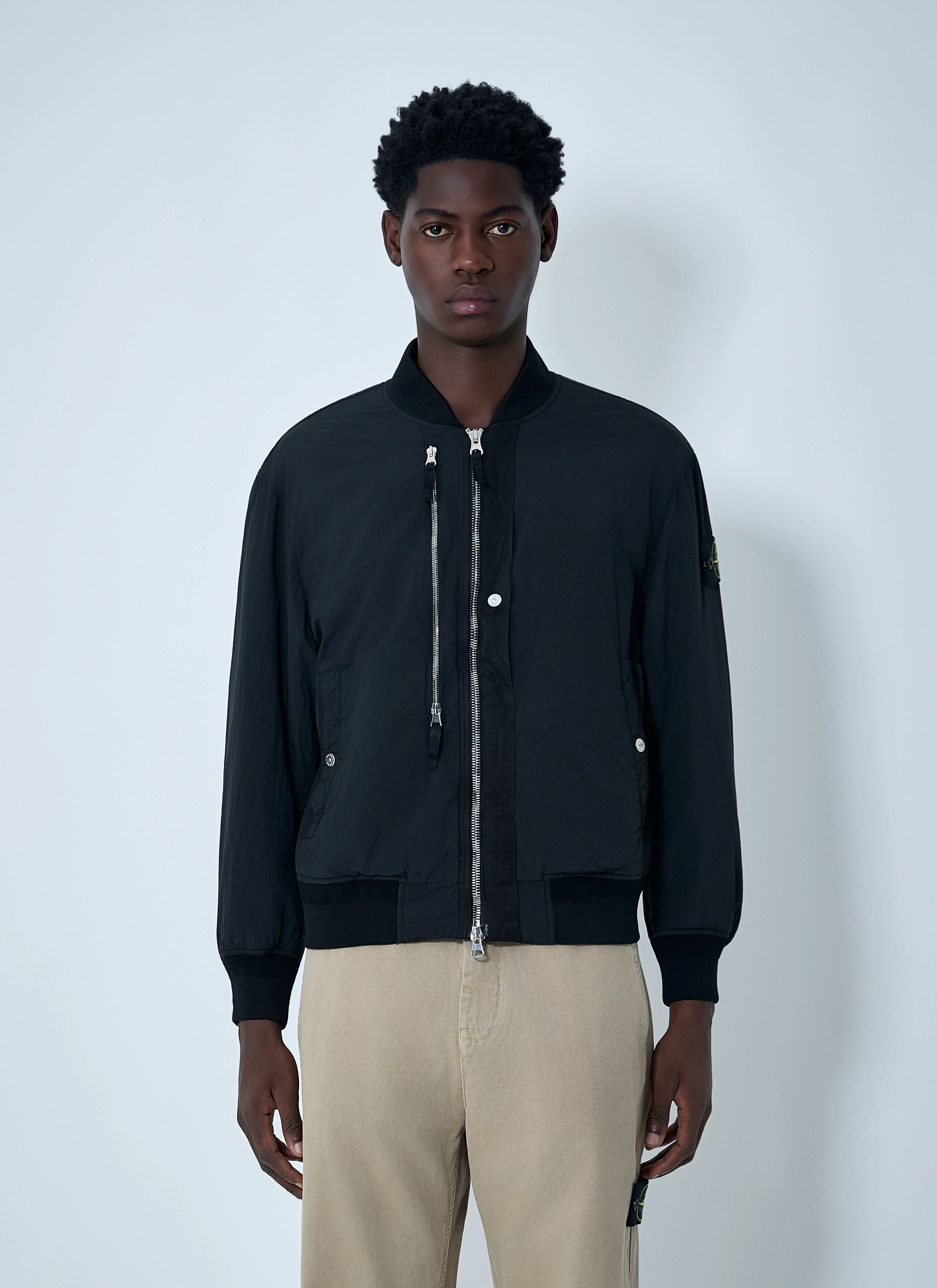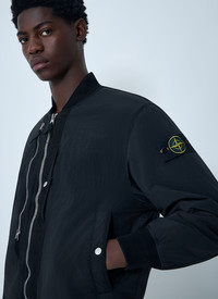 Iridescent Nylon Metal bomber jacket made with ECONYL® regenerated yarns, with PrimaLoft® insulation. - Crewneck - Front zip fastening - Long sleeves - Front zip fastening pocket - Side slip pockets - Logo patch at side - Rib trims - 100% Polyamide. Specialist dry clean - Color: Black - Code: 4100038 S0019 V0029