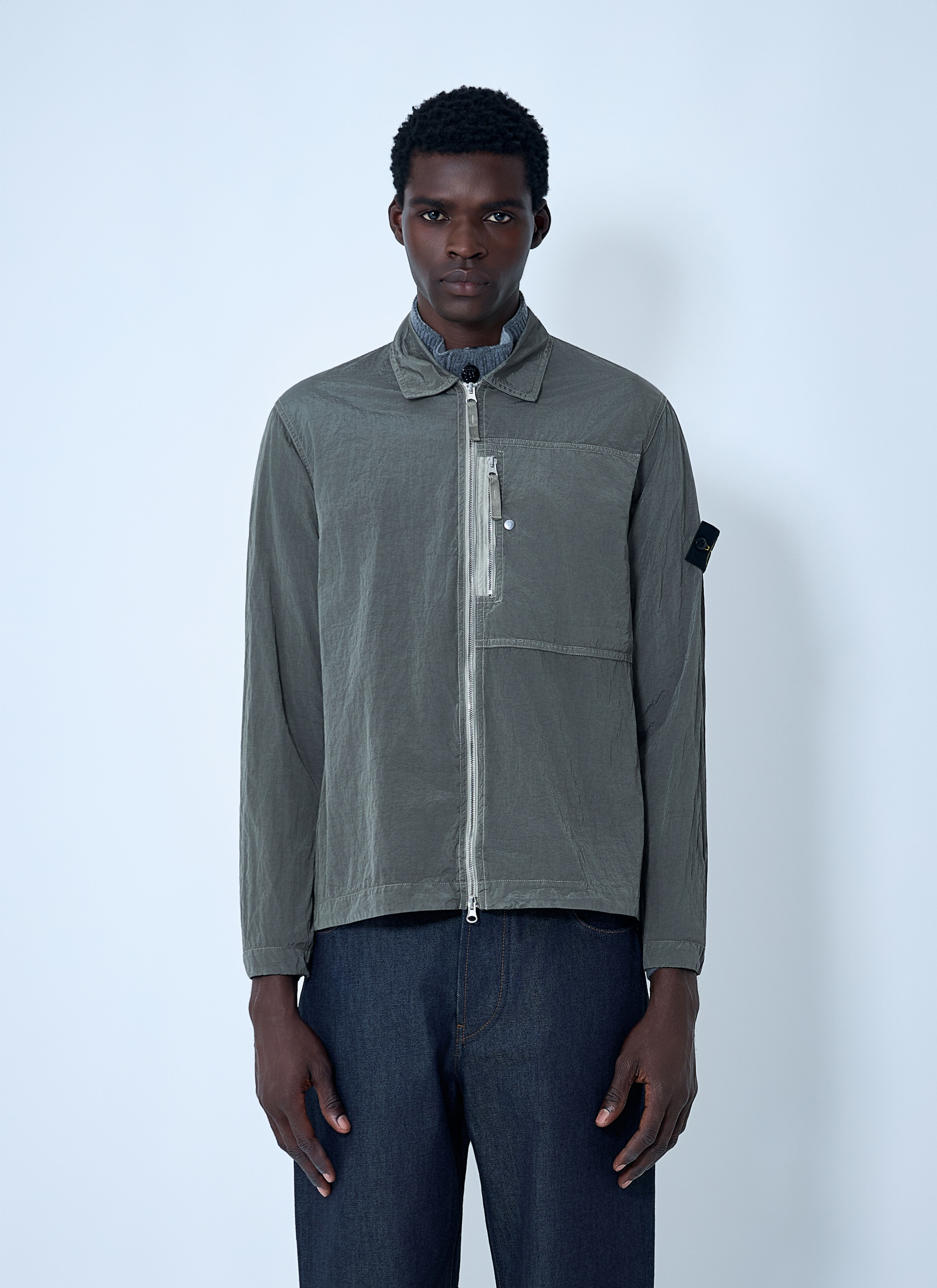 Iridescent Nylon Metal overshirt made with ECONYL® regenerated yarns. - Classic collar - Front zip fastening - Long sleeves - Front zip fastening pocket - Side logo patch - 100% Nylon. Specialist clean - Color: Green - Code: 1200031 S0019 V0054