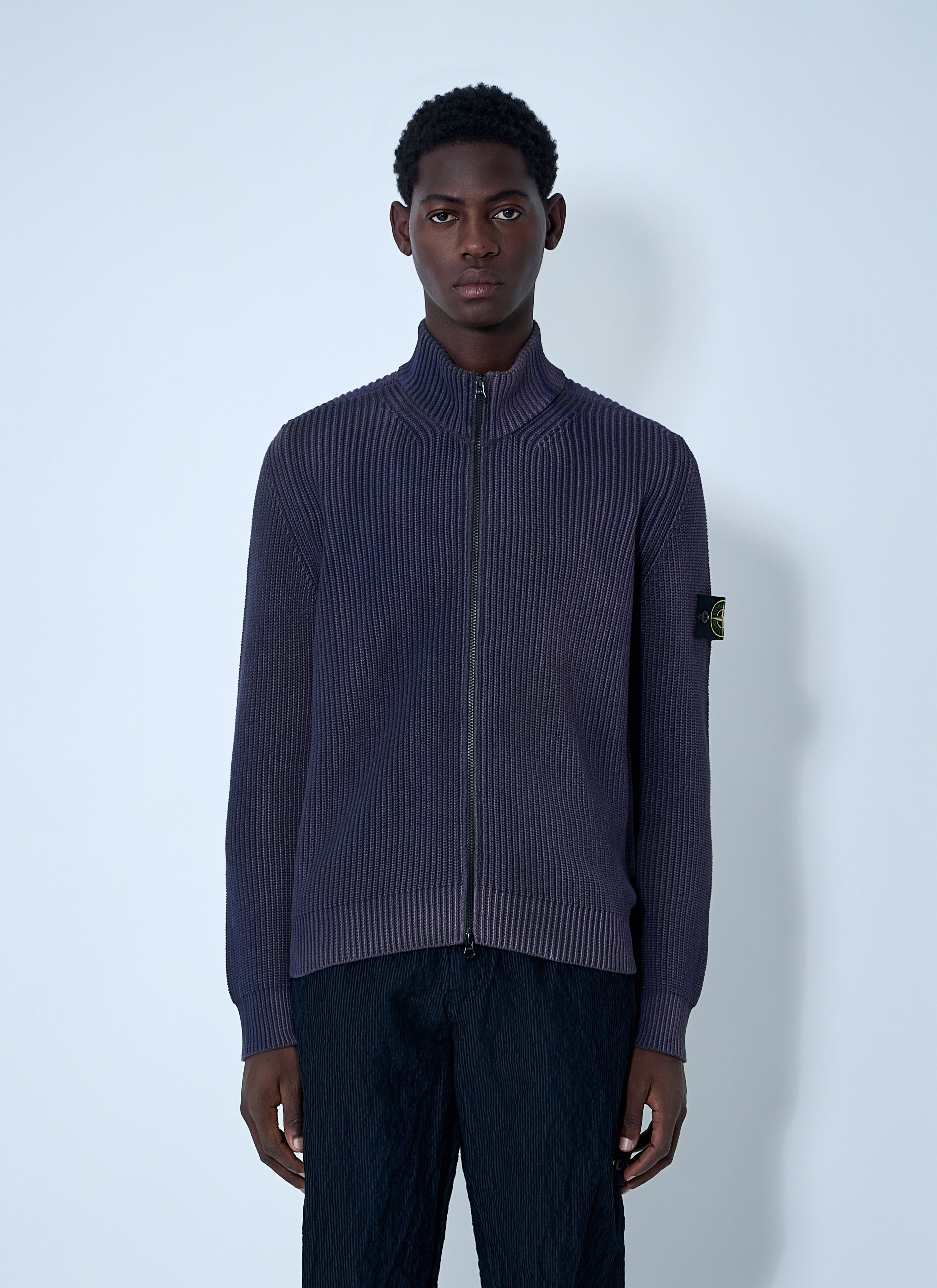 Knit zip-up sweater in organic cotton with fisherman’s rib and a two-tone spray effect. - Stand collar - Front zip fastening - Long sleeves - Logo patch at side - Straigh hem - 100% Cotton. Hand wash - Color: Purple - Code: 5100017 S00Z4 V0017