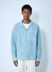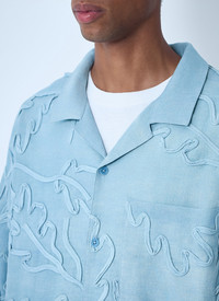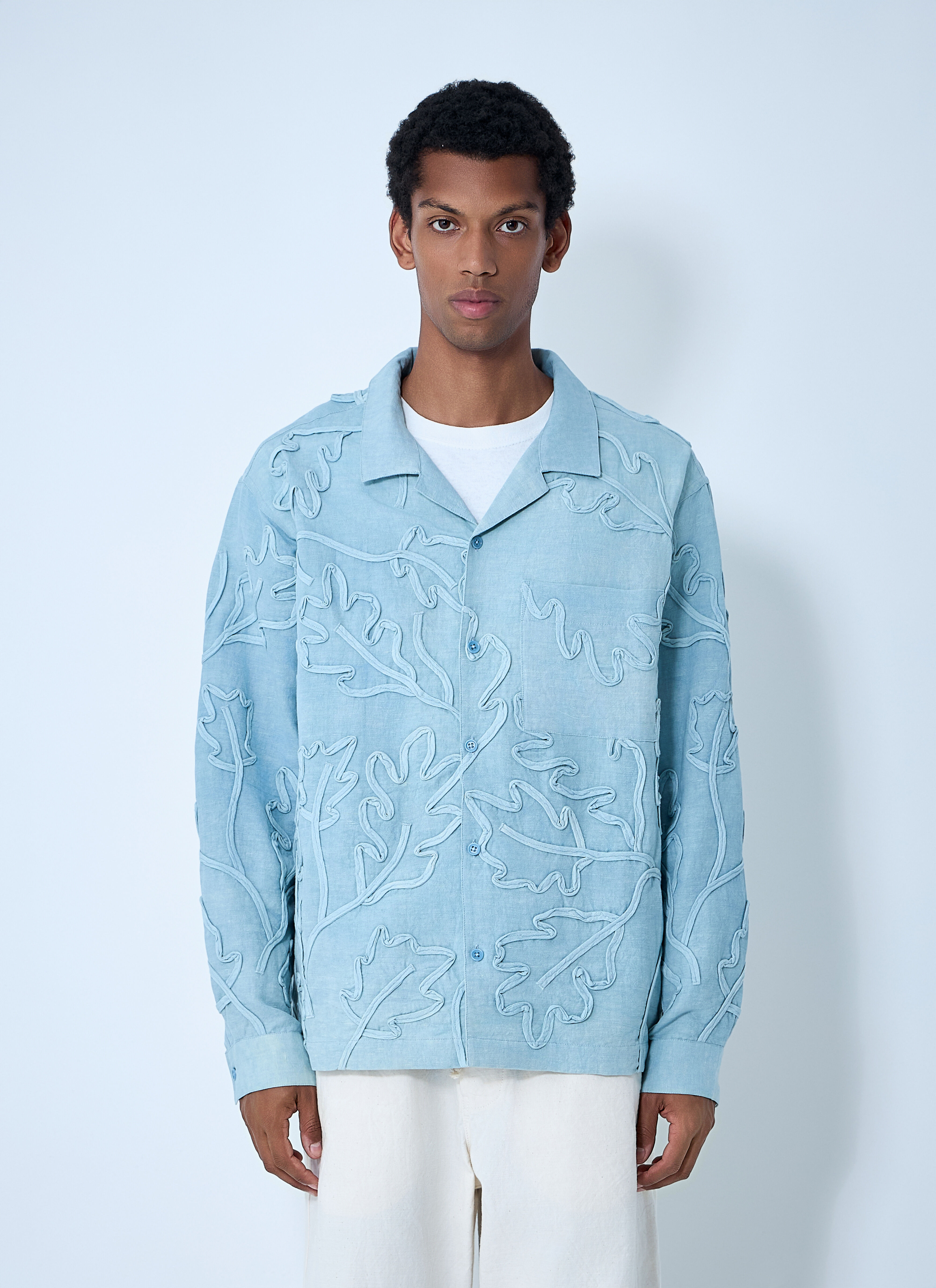 Button-down shirt in textured finish. - Camp collar - Front button fastening - Long sleeves - Button-fastening cuffs - 55% Cotton, 45% Linen. Hand wash - Color: Blue - Code: SSS25SHGRLCOTPLA