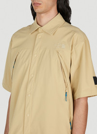 - Technical blend fabrication in a close weave - Classic collar - Front snap-button fastening - Short sleeves - Sleeve logo patch - Chest and rear logo embroidery - Side zip pockets - Rear logo embroidery - 89% Polyamide, 11% Elastane. Machine wash cold - Color: Beige - Code: NF0A81L7LK5