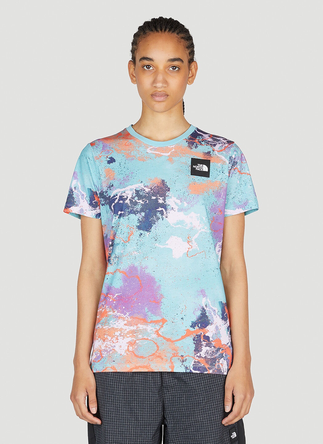 Cotton splatter t-shirt. - Crewneck - Short sleeves - Front logo patch - Graphic motif - 100% Cotton. Machine wash cold - Color: Blue - Code: NF0A7X3FITV
