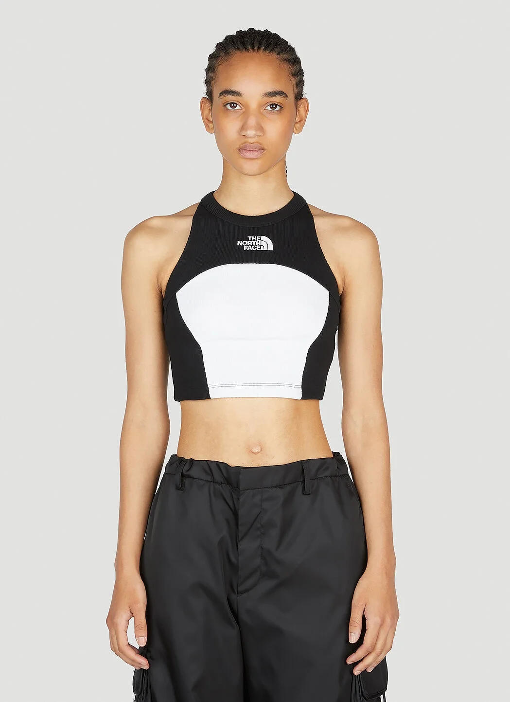Cotton ribbed tank top. - Crewneck - Front logo embroidery - Contrast panel - 95% Cotton 5% Elastane. Machine wash cold - Color: White - Code: NF0A823DKY4