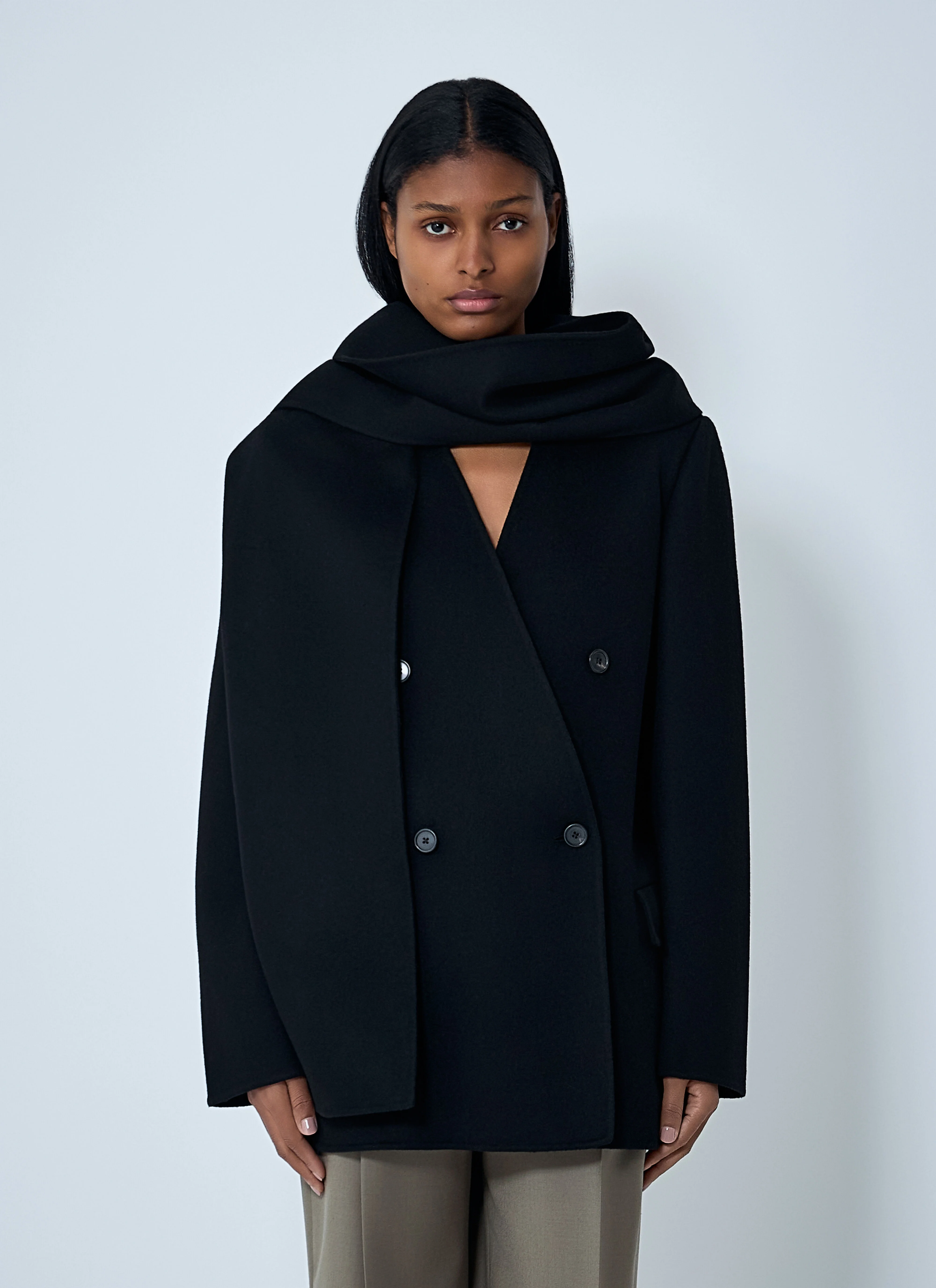 Double-breasted coat in cashmere with integrated scarf. - Notched lapels - Double-breasted button fastening - Long sleeves - Side slip pockets - Integrated scarf detail - 100% Cashmere. Dry clean - Color: Black - Code: 10161 W4025 BLK