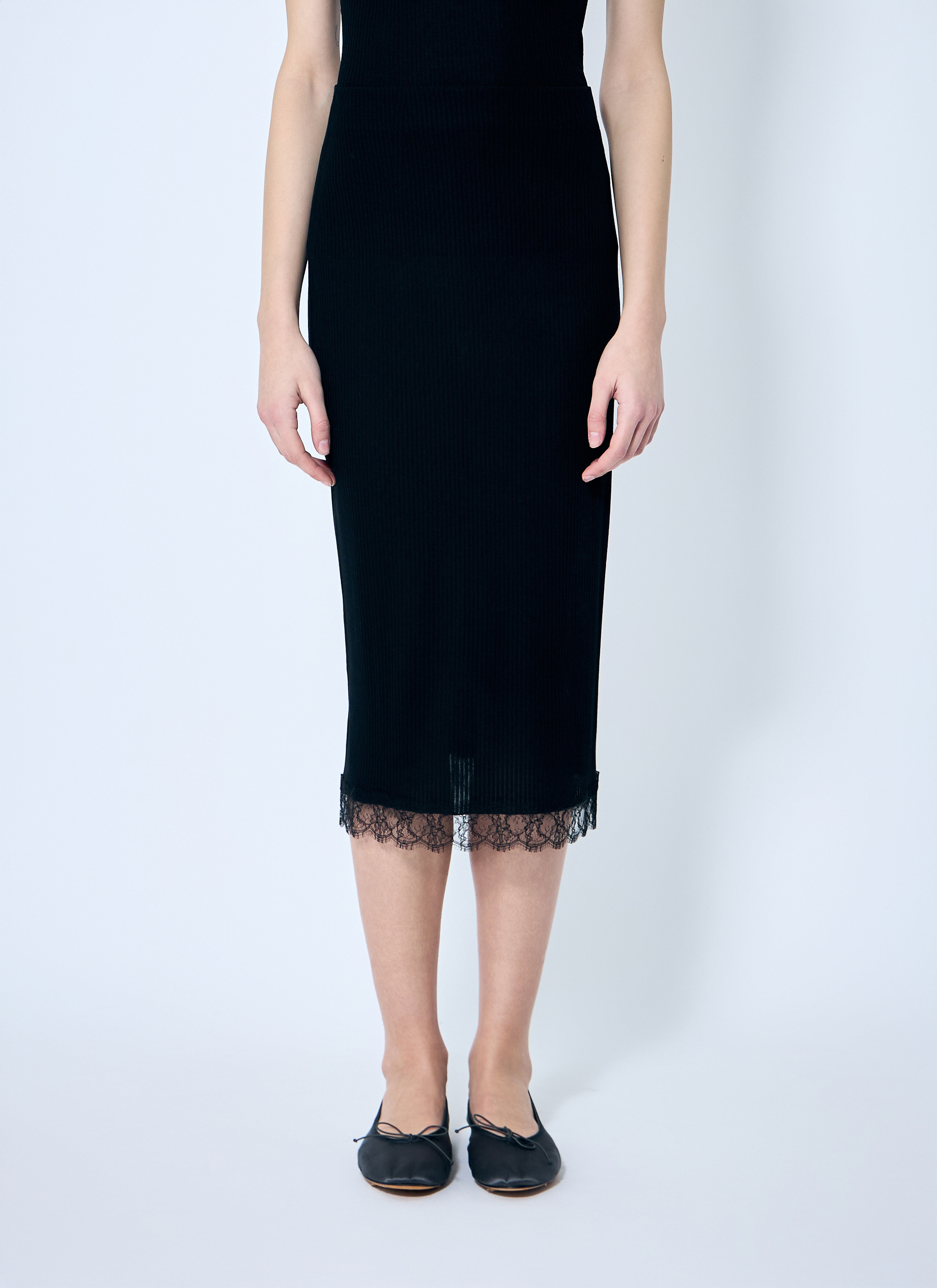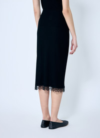 Silk-blend skirt with lace trims. - Mid rise - Elasticated waistband - Lace trim - 97% Silk, 2% Polyamide, 1% Elastane. Dry clean - Color: Black - Code: 8438 Y136 BLK