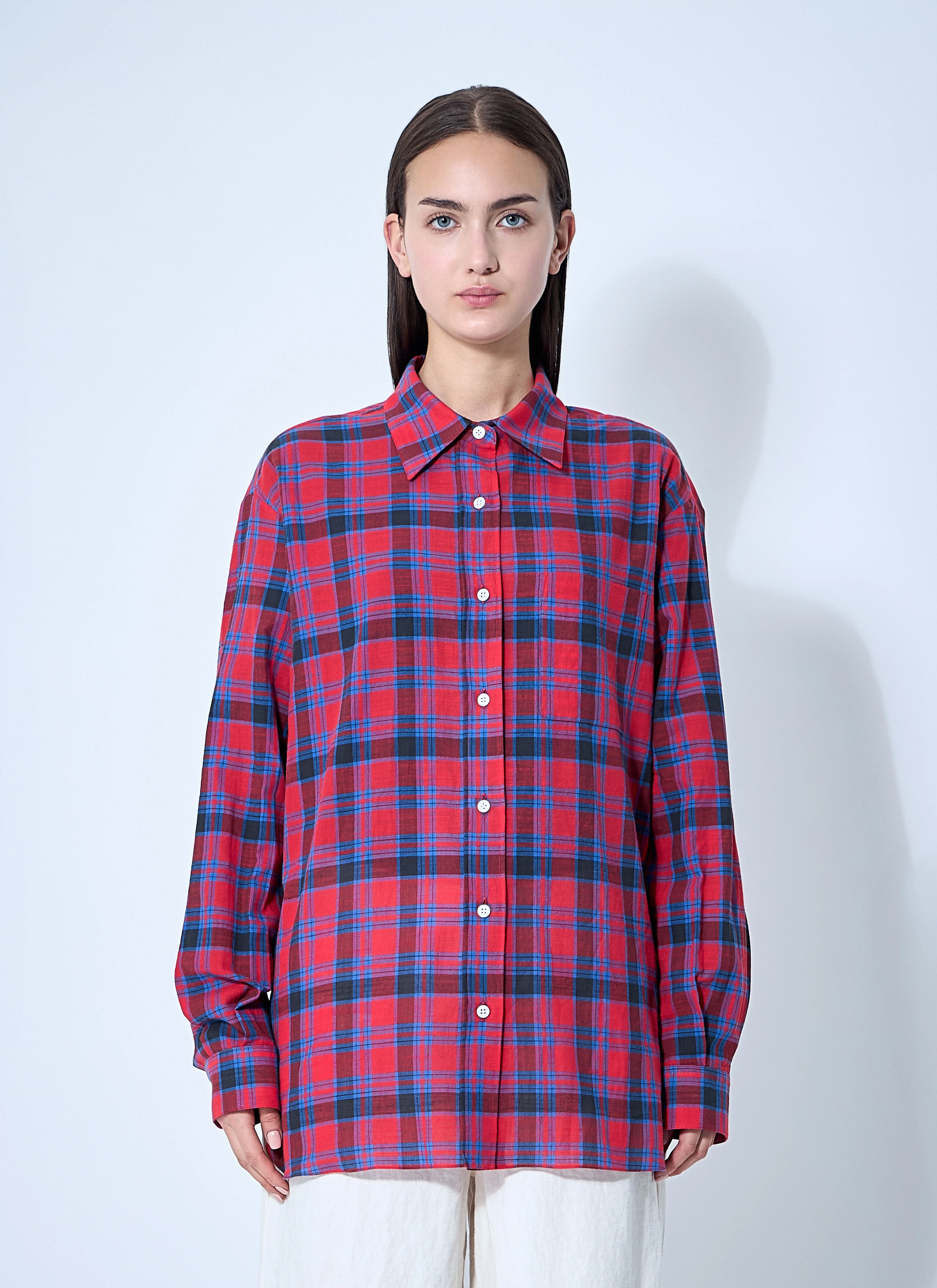Button-down shirt in cotton weave. - Classic collar - Front button fastening - Long sleeves - Chest patch pocket - Button-fastening cuffs - Made in Italy - 100% Cotton. Dry clean - Color: Red - Code: 8740 W3796 RDB