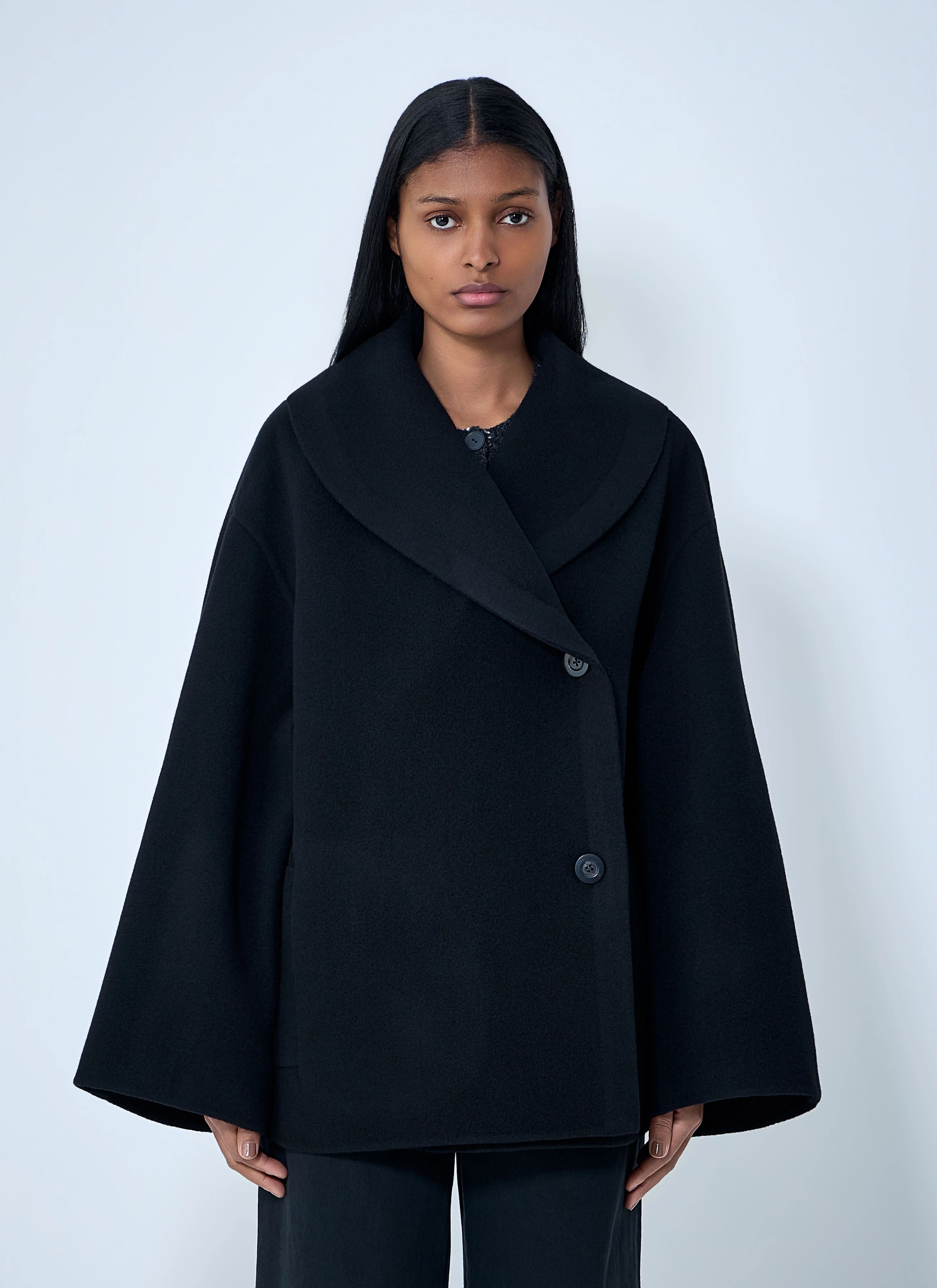 Oversized coat in wool-blend with wide lapels. - Wide lapels - Button fastening - Oversized fit - 100% Wool. Hand wash - Color: Black - Code: 10602-W4238-BLK