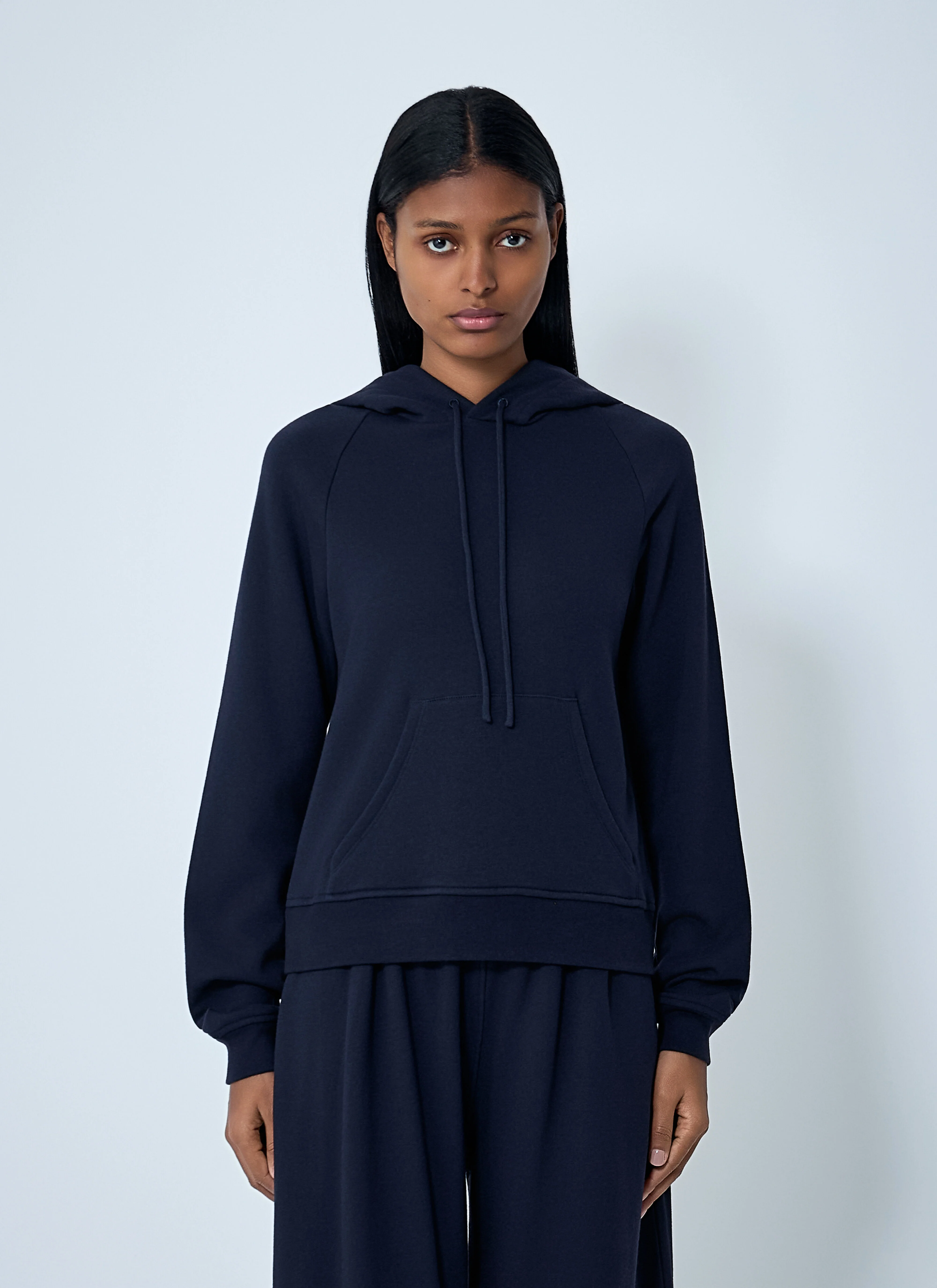 Hooded sweatshirt in cotton jersey with kangaroo pocket. - Drawstring hood - Long sleeves - Kangaroo pocket - 84% Cotton, 16% Cashmere. Dry clean - Color: Navy - Code: 9060 K628 DRN