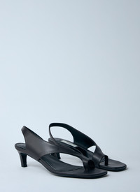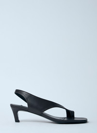 Leather heeled sandals in smooth-grain finish. - Toe post - Wrap-around construction - Kitten heel - 100% Leather - Color: Black - Code: 252-WAS0201-LE0131 273