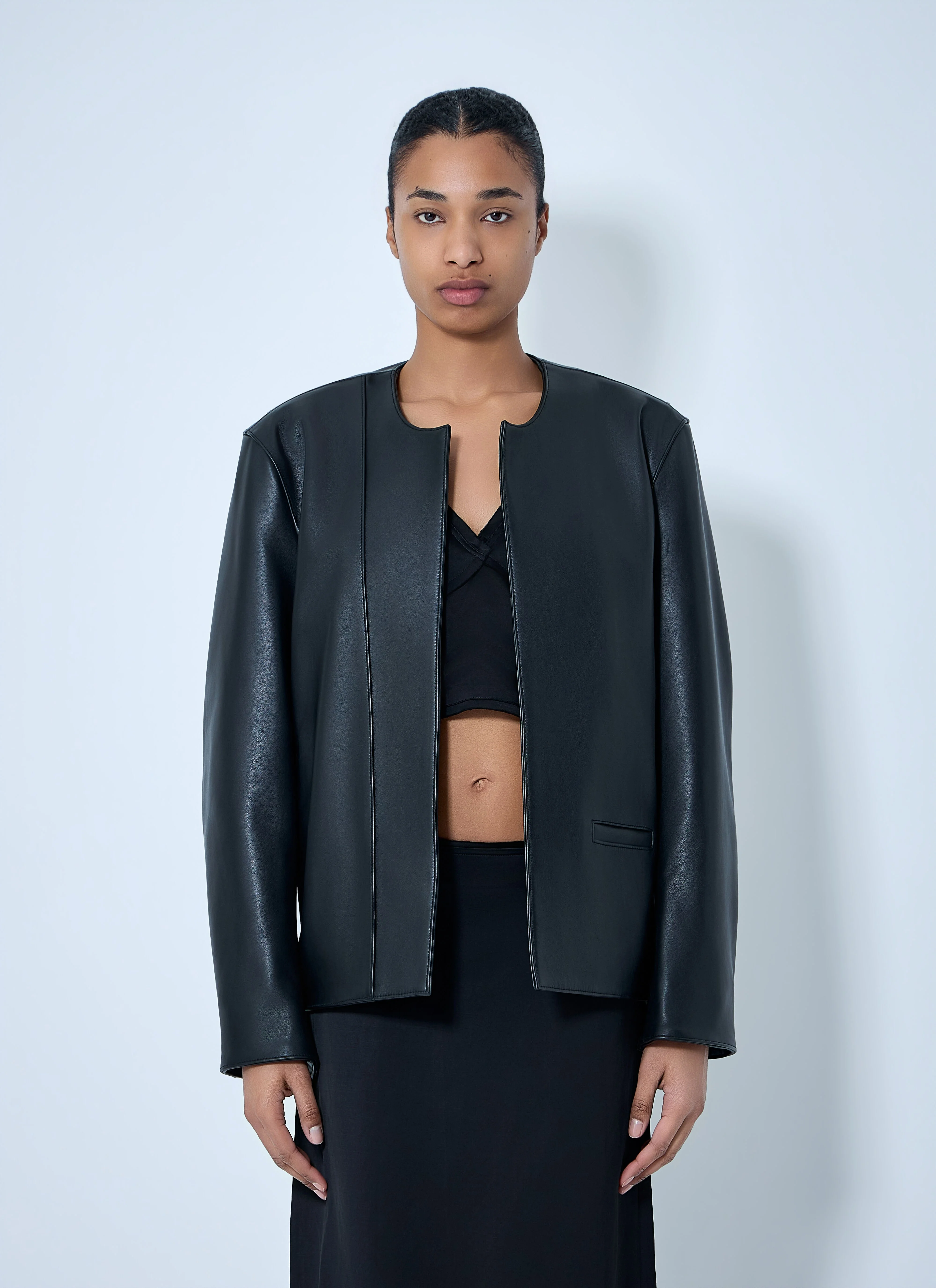 Open front leather jacket with minimalist design. - Boundary stitch detailing - Single welt pocket - Long sleeves - 100% Leather - Color: Black - Code: 262-WRO0322-LE0207-001