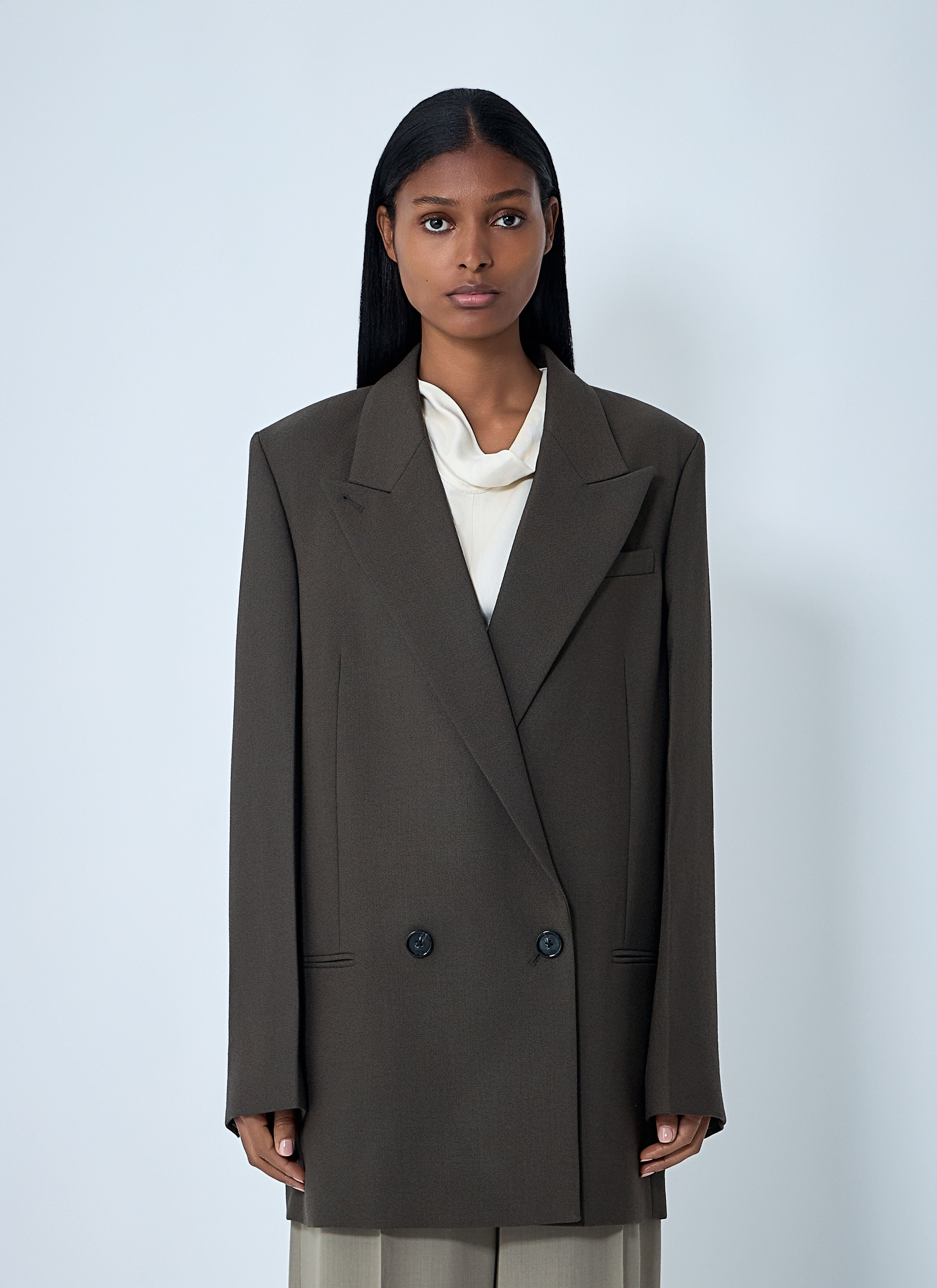 Double-breasted blazer in wool-blend. - Notched lapels - Double-breasted-button fastening - Long sleeves - Chest welt pocket - Front slip pockets - Fully lined - 94% Wool, 6% Polyamide. Dry clean - Color: Brown - Code: 254-WRZ0058-FB0537-032