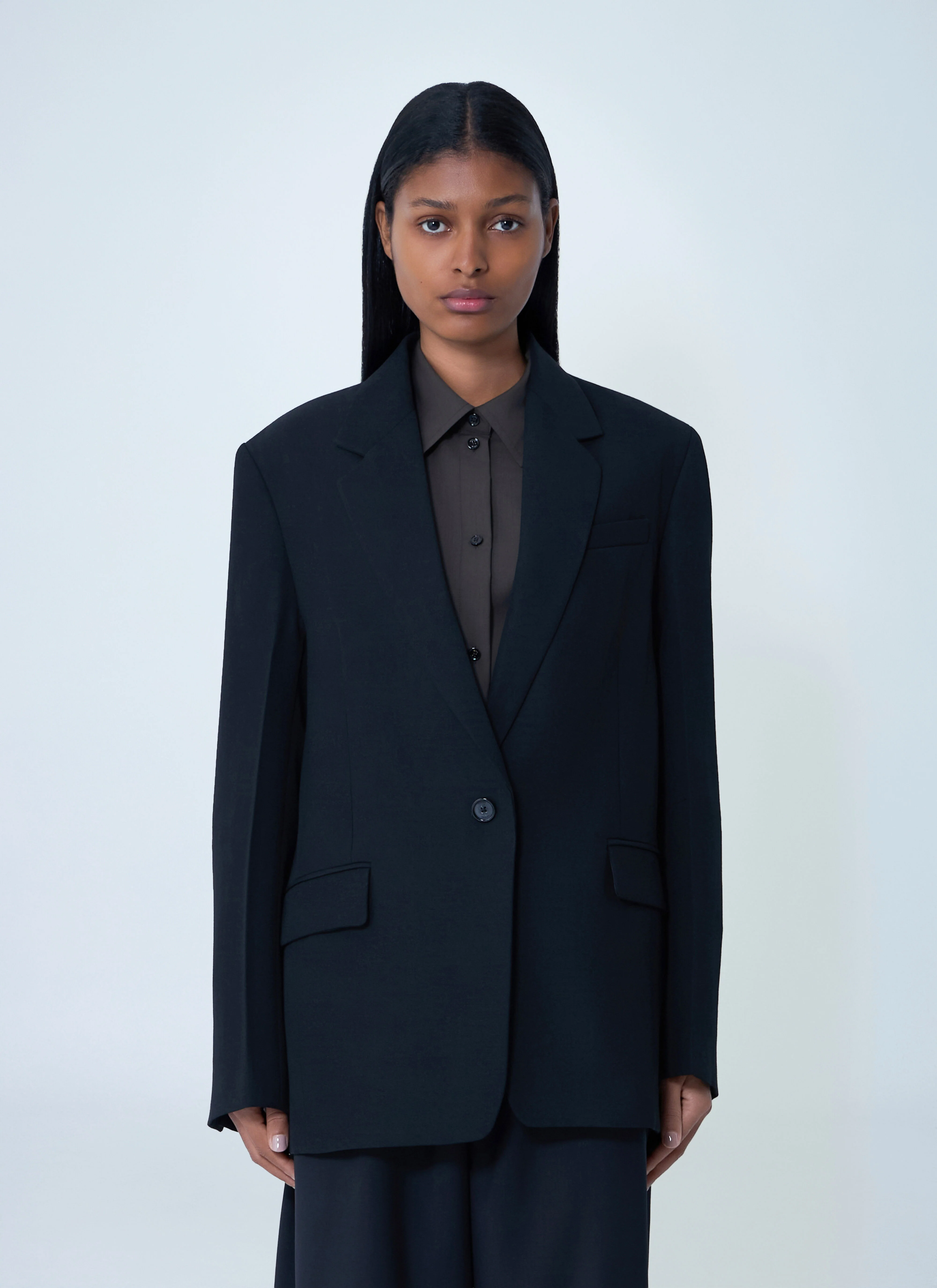 Single-breasted blazer in wool-blend. - Notched lapels - Single-breasted button fastening - Long sleeves - Side slip pockets - Fully lined - 55% Polyester, 45% Wool. Dry clean - Color: Black - Code: 252-WRZ0049-FB0026-001