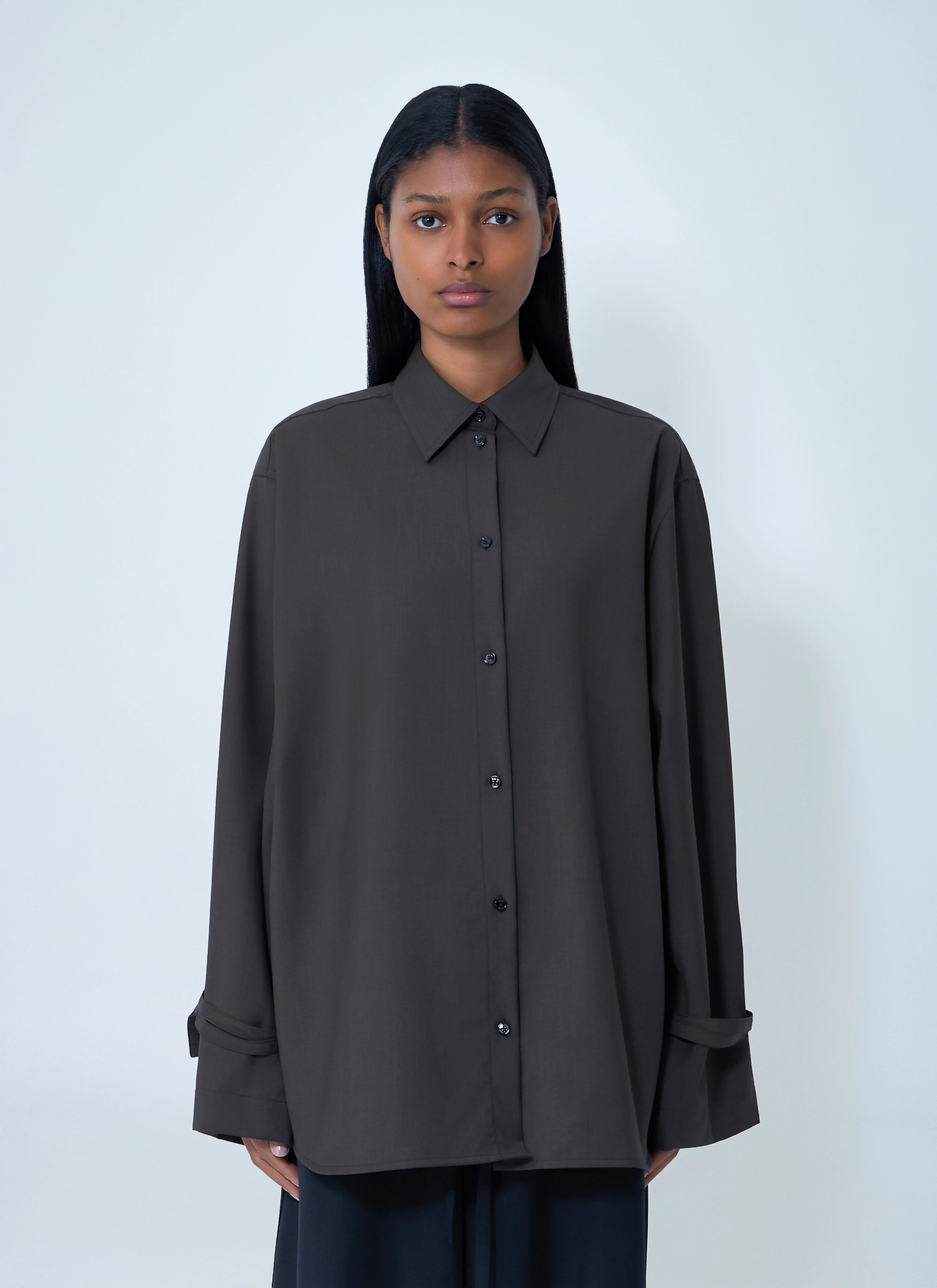 Button-down shirt with adjustable tabs at cuffs. - Classic collar - Front button fastening - Long sleeves - Adjustable cuffs - 100% Wool. Dry clean - Color: Brown - Code: 261-WRT0622-FB0552-273