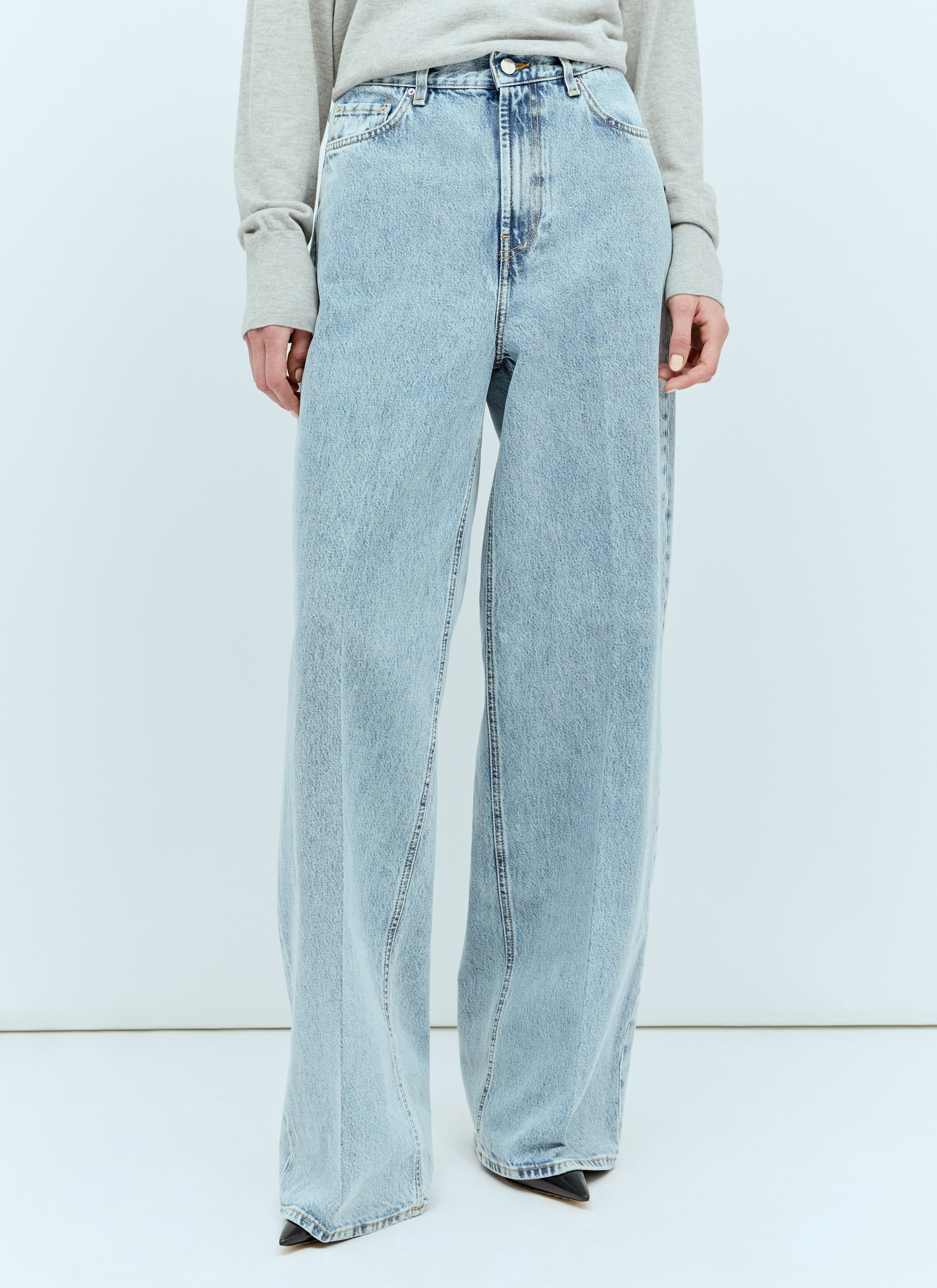 Wide-leg jeans in washed denim. - Mid rise - Top-button and zip-fly fastening - Belt loops - Five pockets - Rear logo patch - 100% Cotton. Machine wash cold - Color: Blue - Code: 242-WRB2426-FB0045 184