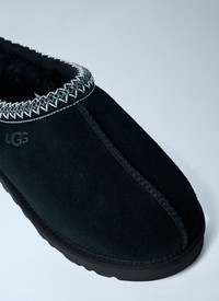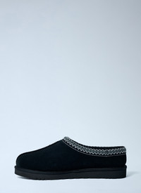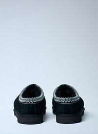 Leather Tasman slip-on mules in suede finish with braid collar. - Round toe - Logo motif at side - Sheepskin lining - Lightweight and flexible EVA for indoor and outdoor use - 100% Leather - Color: Black - Code: 1174470-BLK