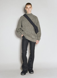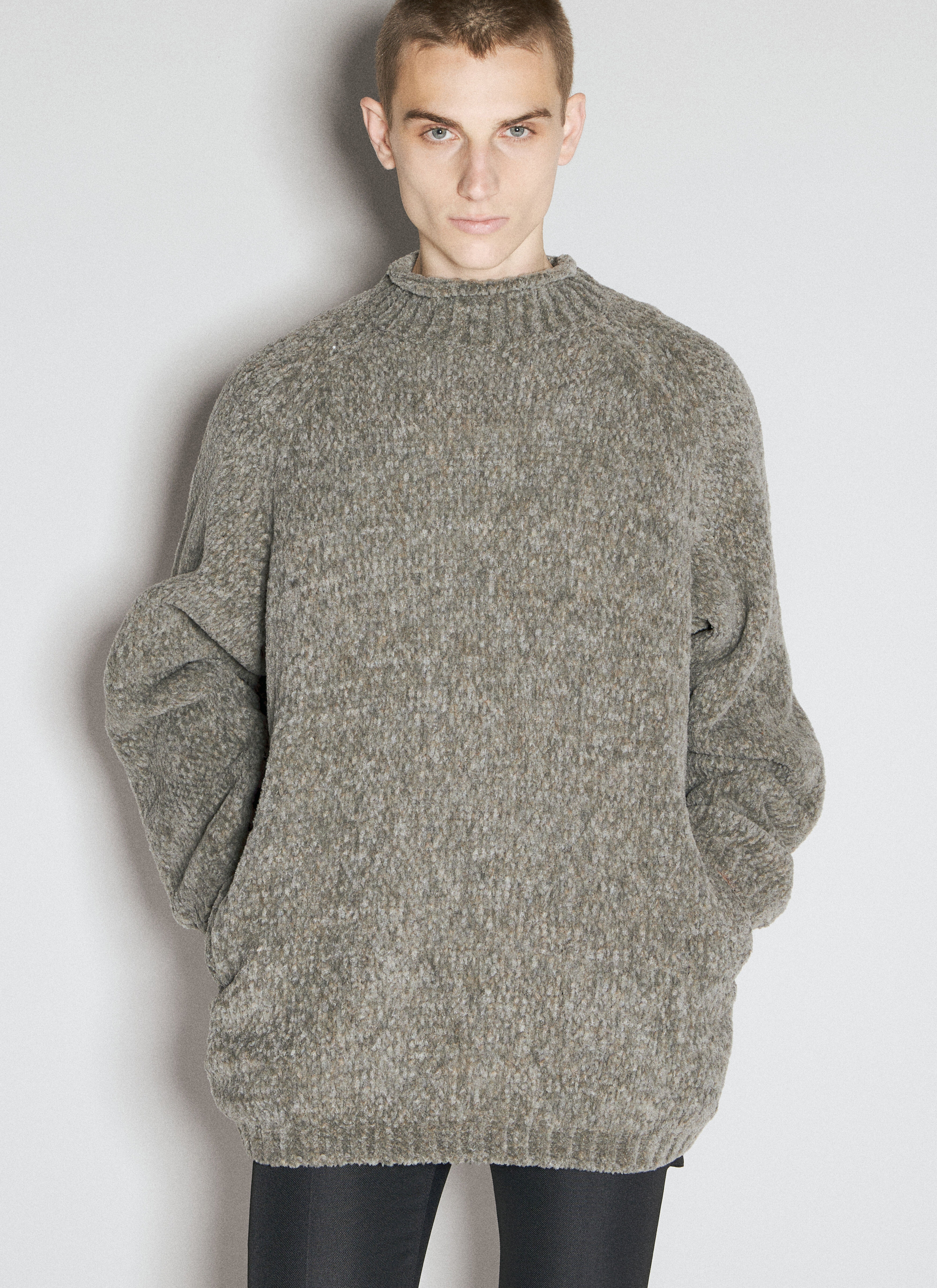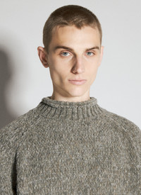 High neck sweater in wool-blend chunky knit. - High neck - Long sleeves - Side slip pockets - Ribbed trims - Made in Japan - 91% Wool, 9% Nylon. Dry clean - Color: Grey - Code: UC2C4911 GRAY BEIGE